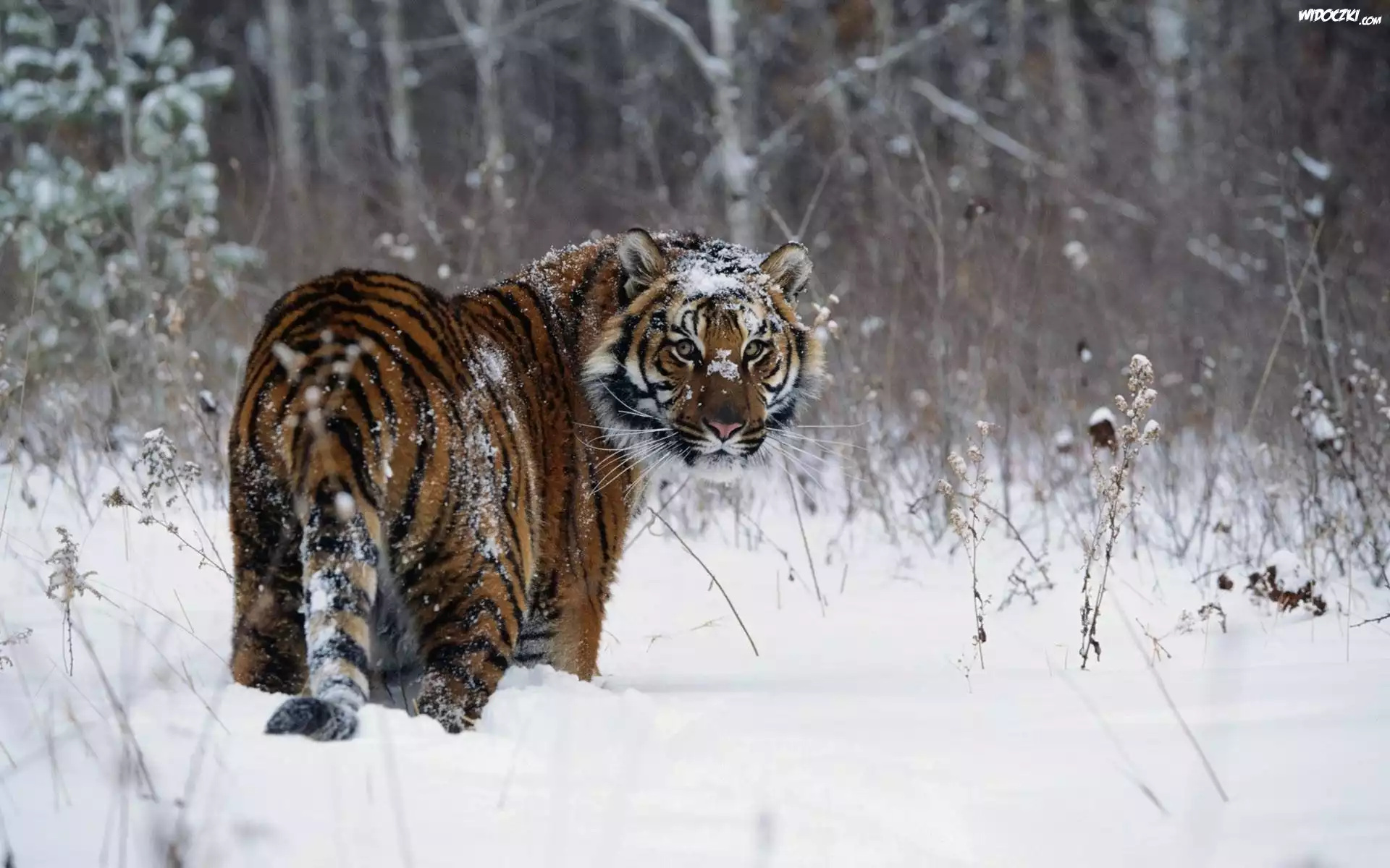 Zdjęcia, Zima, Tygrys, Spojrzenie