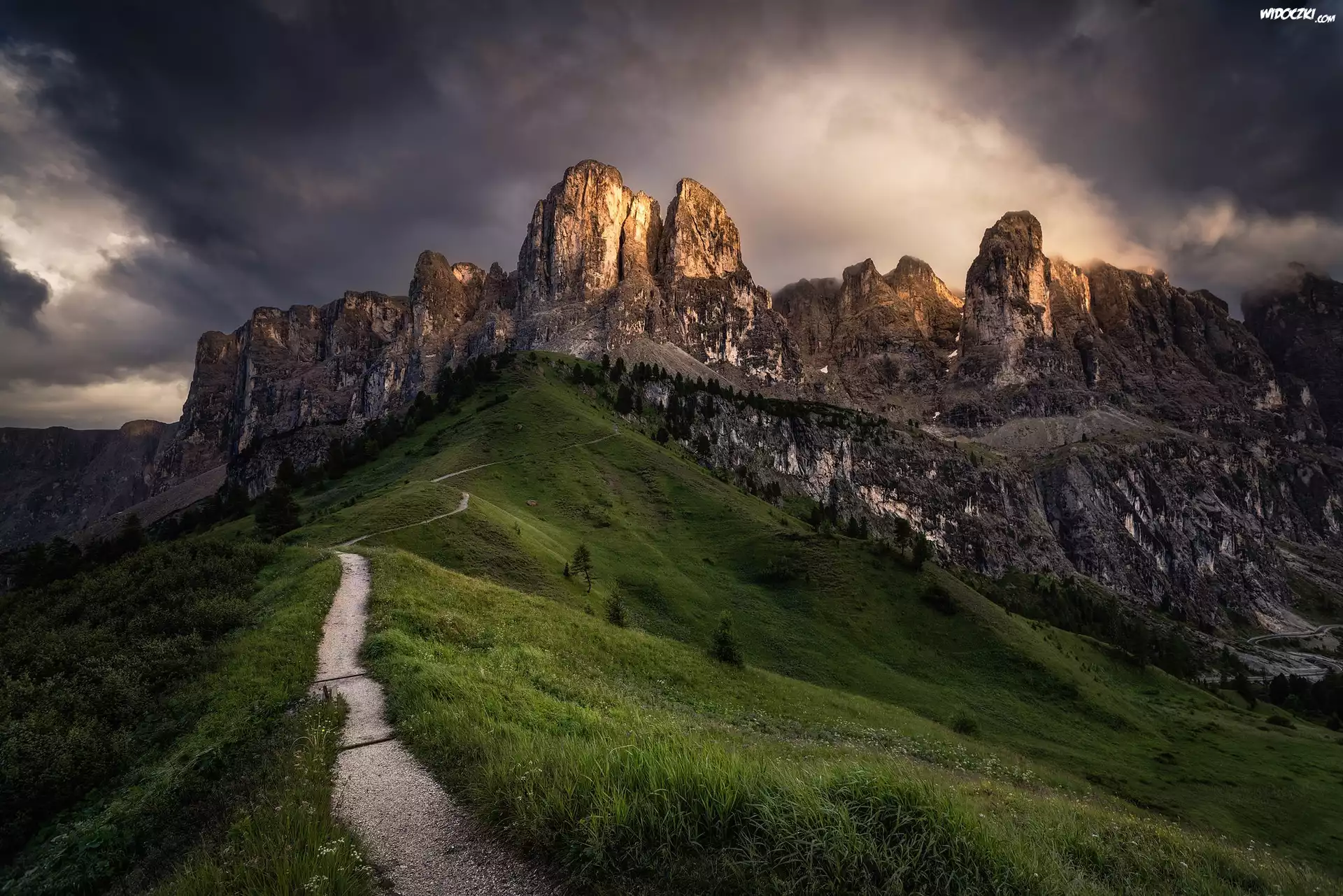 Zdjęcia, Włochy, Południowy Tyrol, Alpy, Dolomity, Przełęcz Gardena Pass, Góry Sella, Ścieżka
