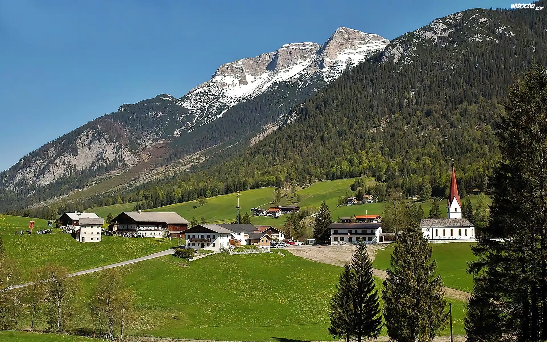 Zdjęcia, Tyrol, Lasy, Łąki, Dolina, Wioska, Steinberg