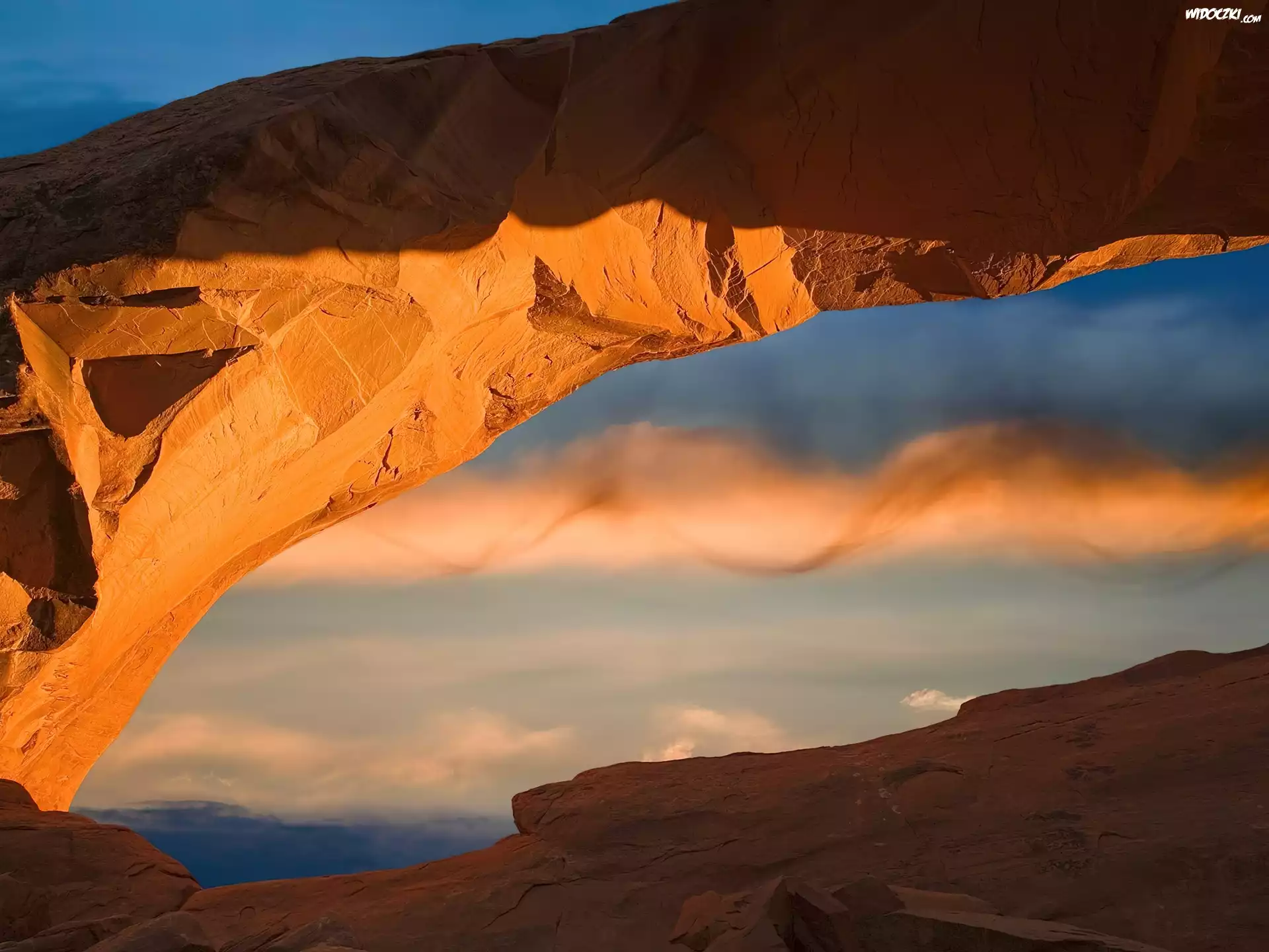 Zdjęcia, Oświetlony, Łuk, Skalny