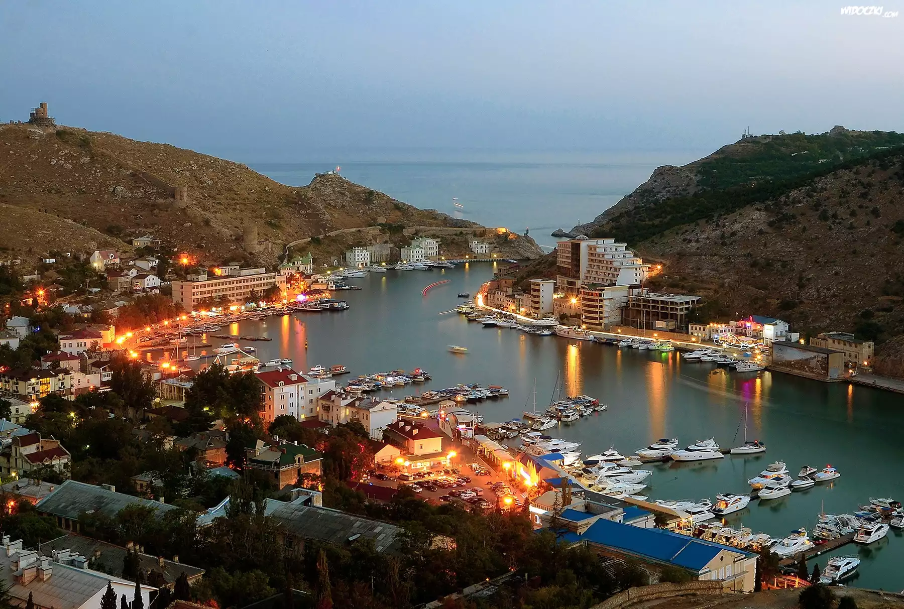 Zdjęcia, Ukraina, Morze, Miasto, Jachty, Żaglówki