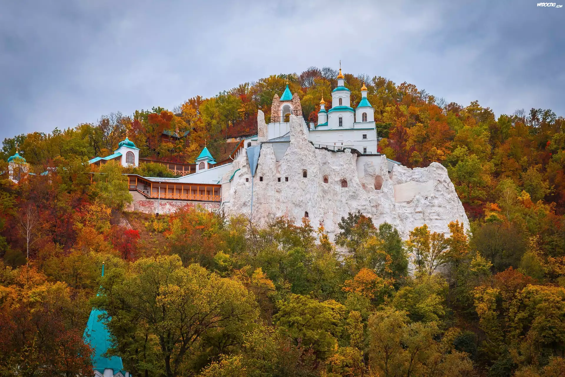 Zdjęcia, Ukraina, Ławra Świętogórska, Klasztor, Lasy, Jesień