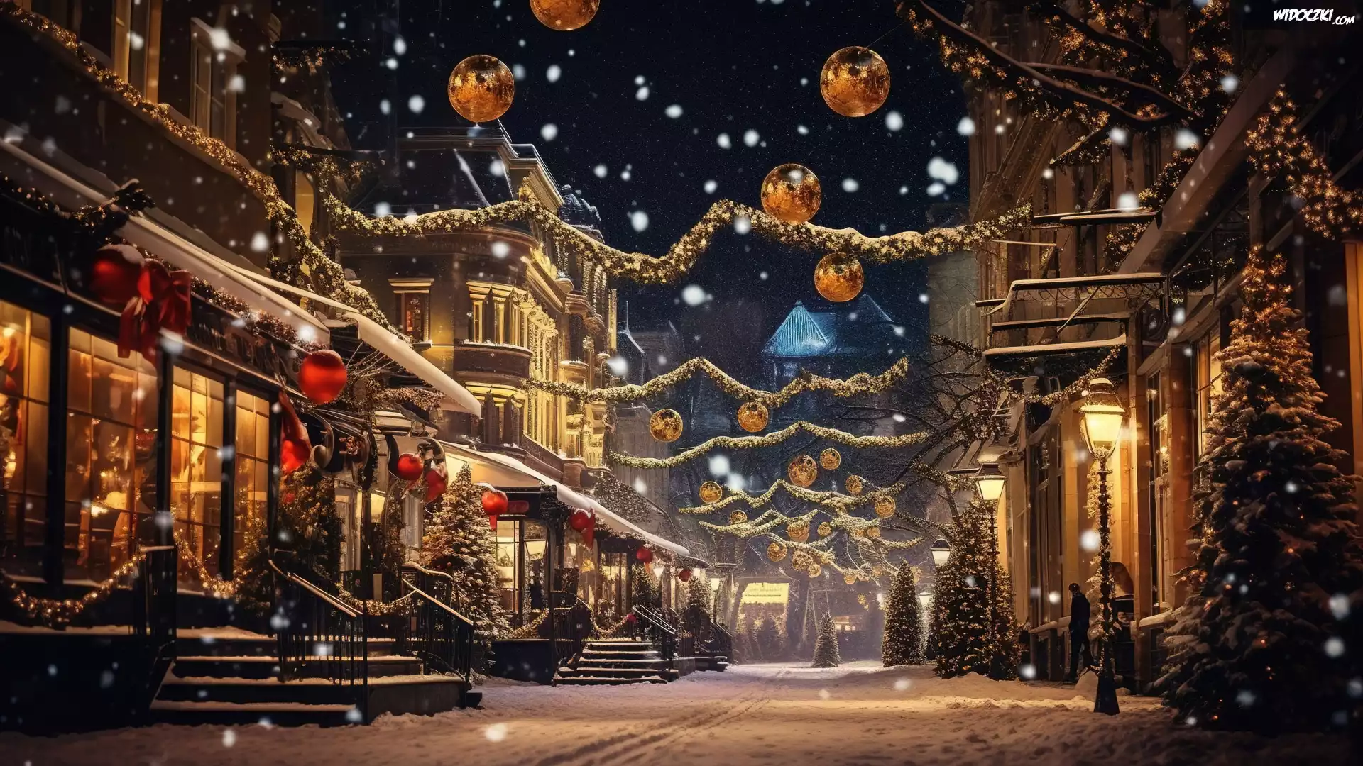 Zdjęcia, Zima, Boże Narodzenie, Ulica, Domy, Oświetlenie, Noc