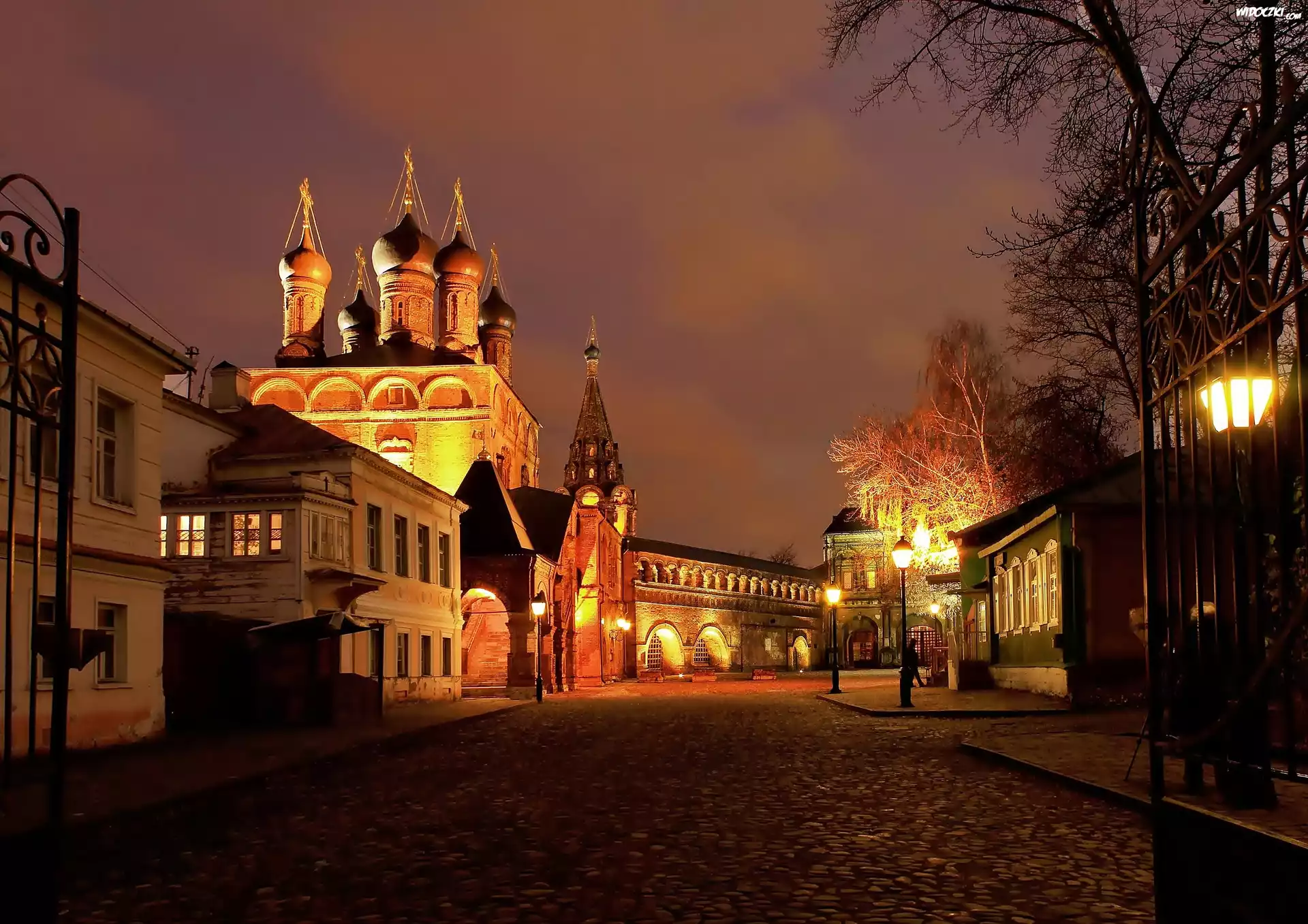 Zdjęcia, Ulica, Wieczór, Oświetlona, Cerkiew
