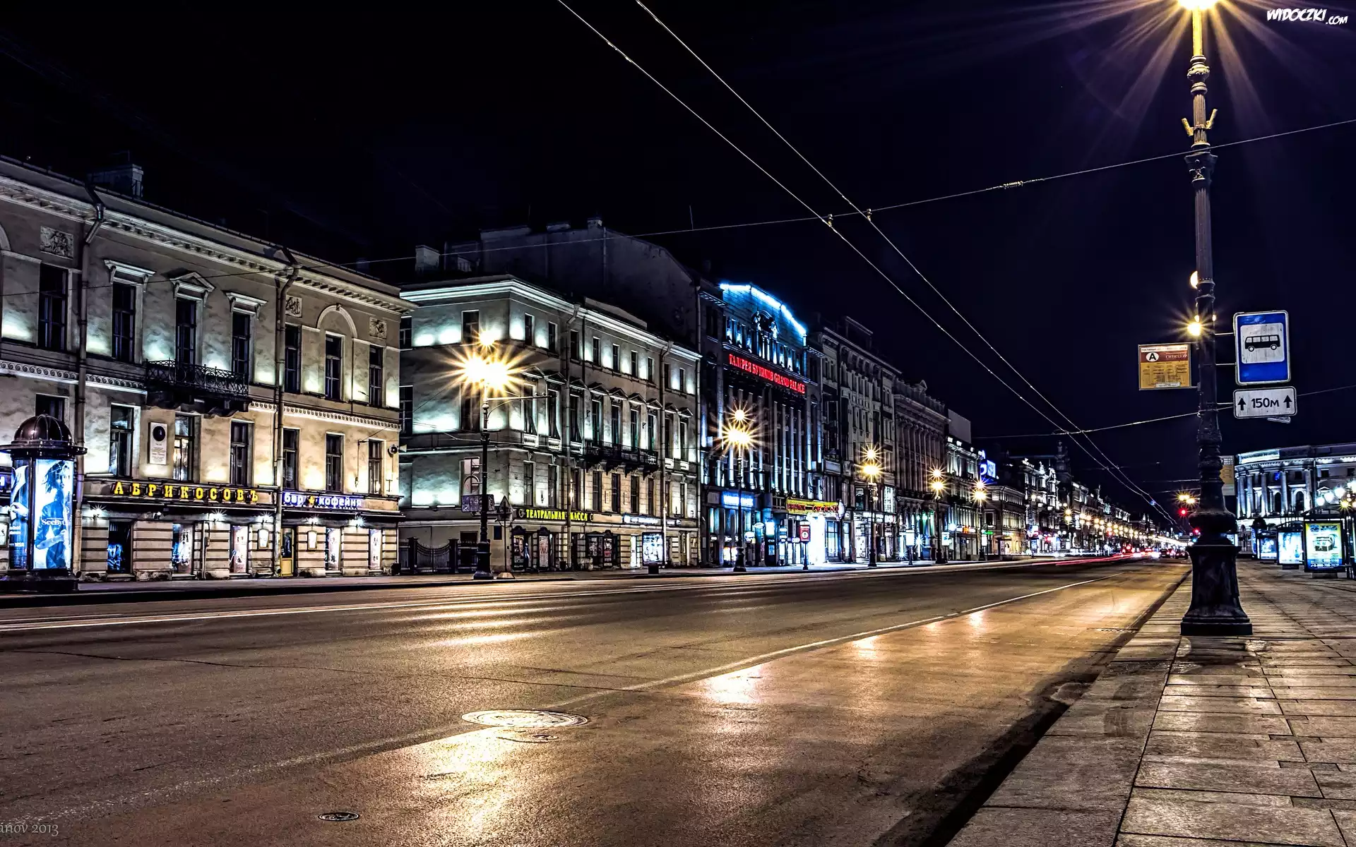 Ulica, Budynki, Latarnie, Petersburg, Rosja