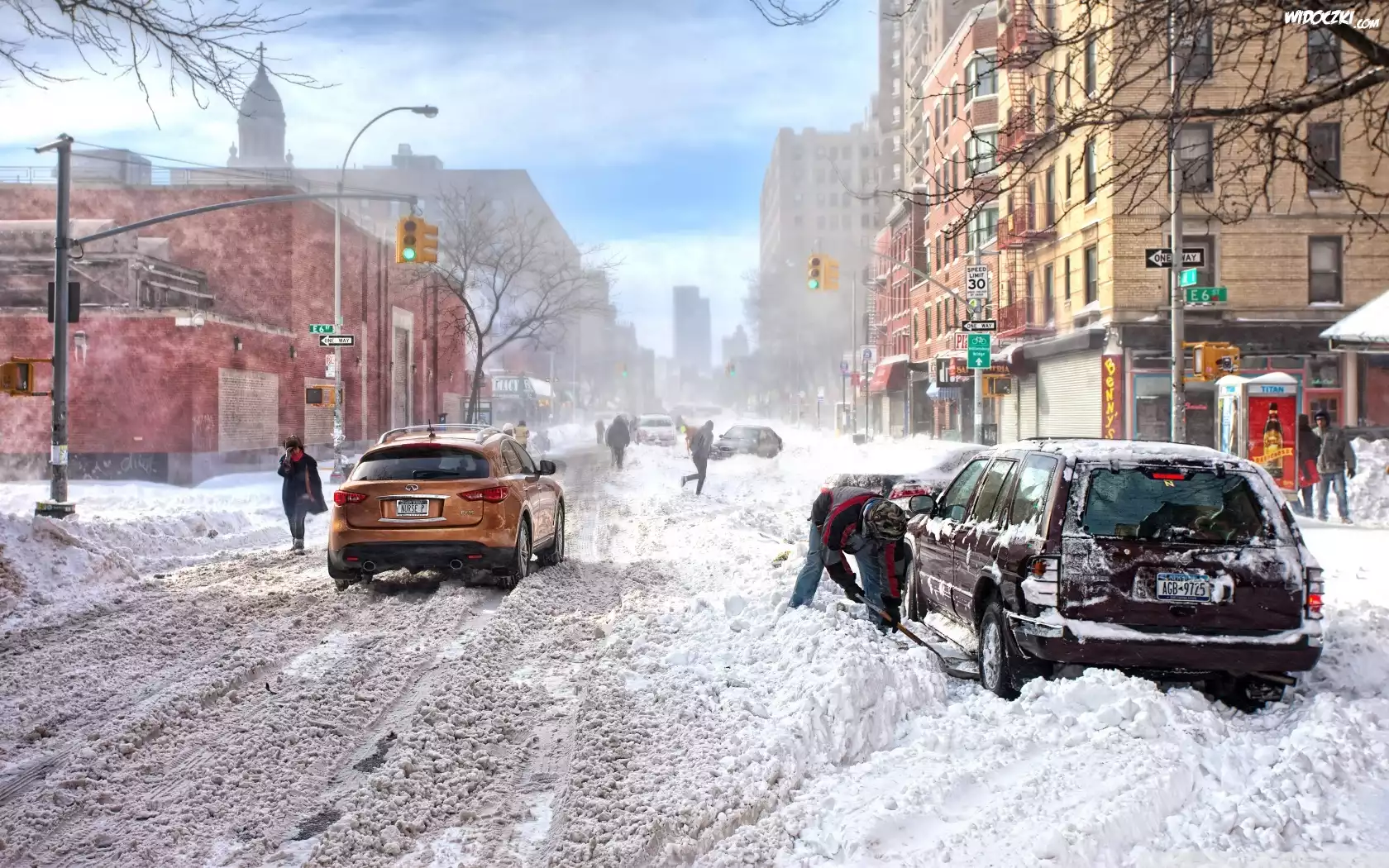 Zdjęcia, Ulica, Domy, Samochody, Zima