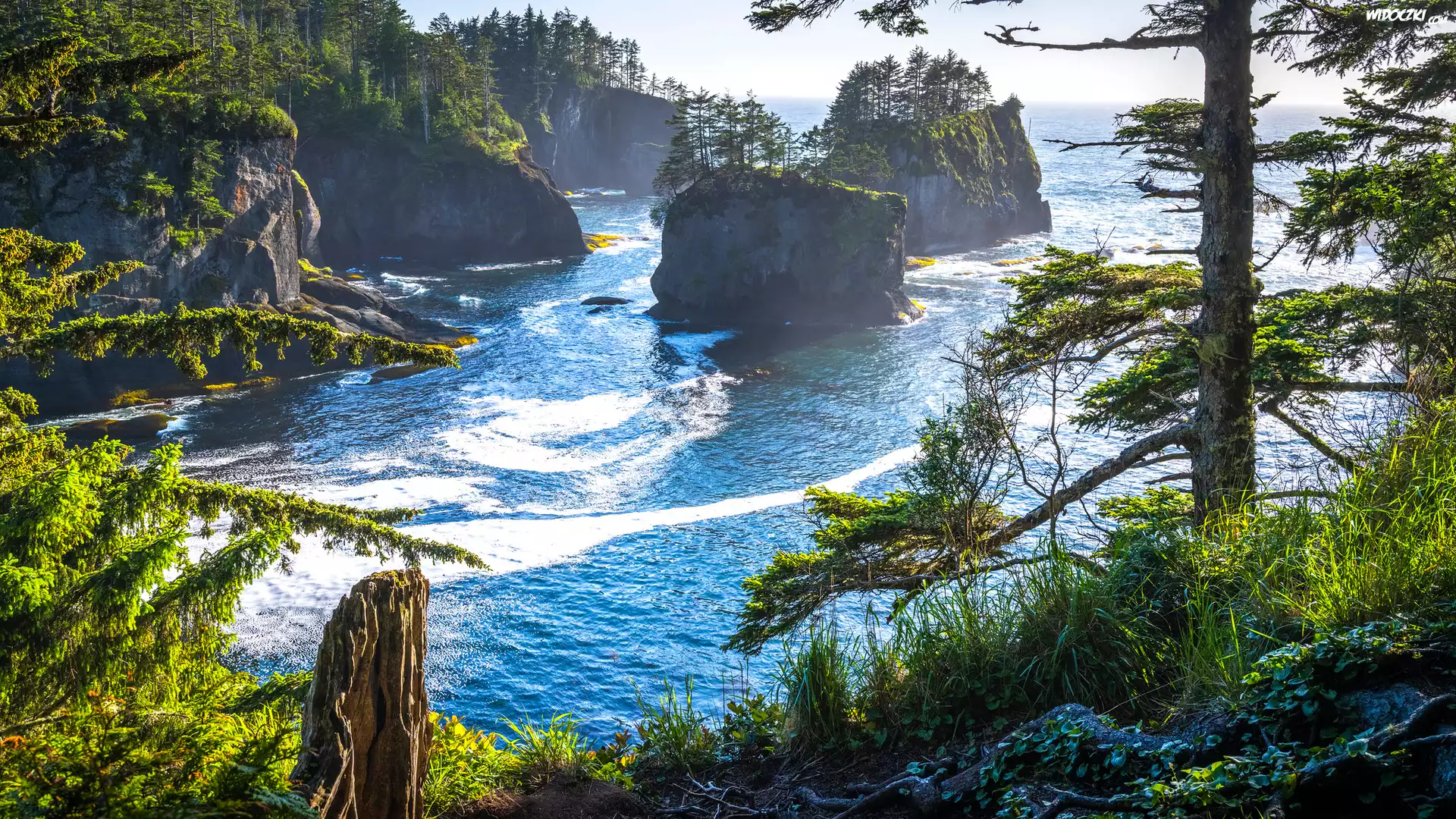 Zdjęcia, Skały, Morze, Drzewa, Urwiska