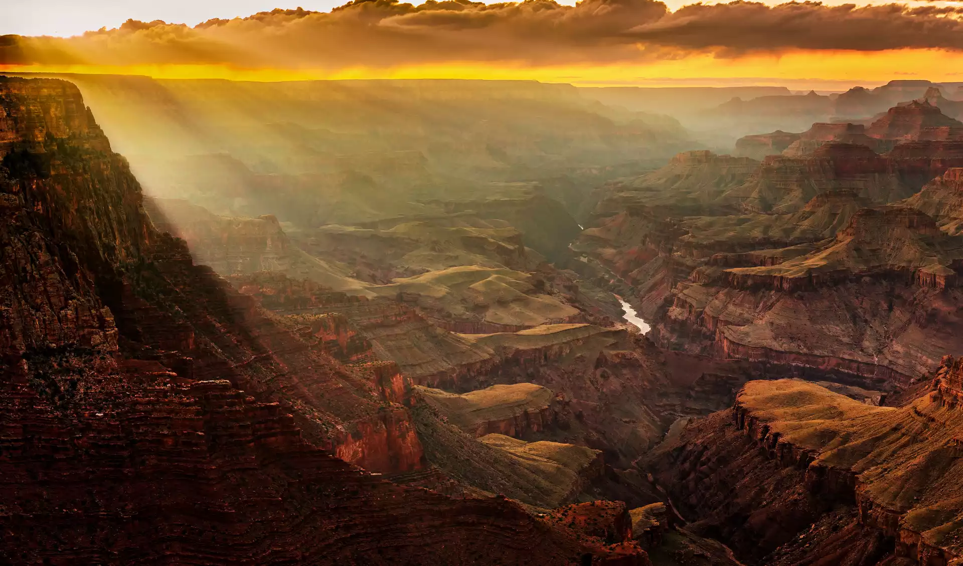 Zdjęcia, Wielki Kanion, I Rzeka, Kolorado, Chmury, Przebijające, Światło, Arizona, USA