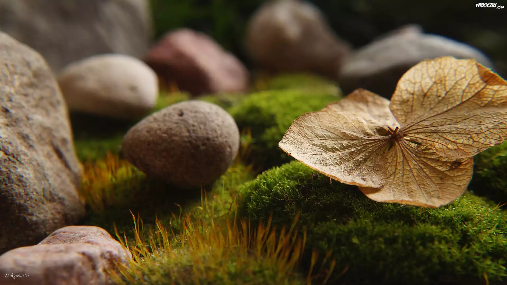 Zdjęcia, Uschnięta, Roślinka, Kamienie, Mech, Makro