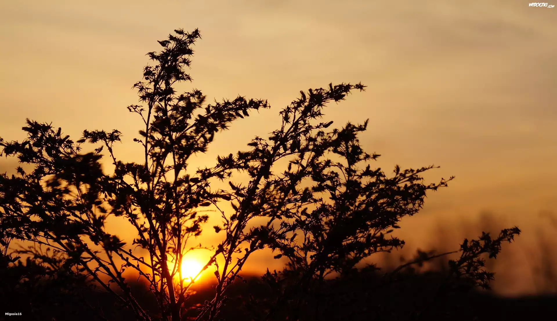 Zdjęcia, Uschnięta, Roślina, Zachód słońca
