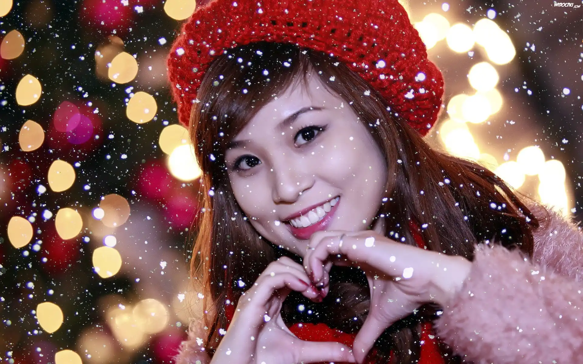 Uśmiechnięta, Japonka, Śnieg, Zima