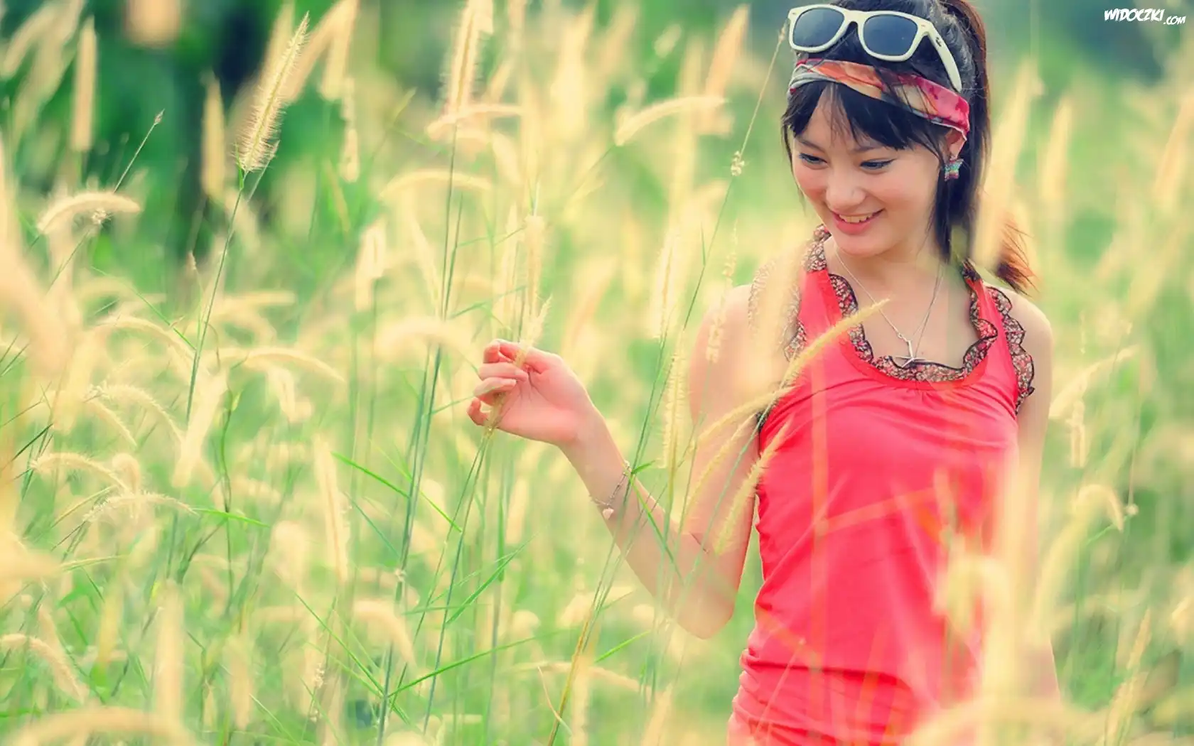 Uśmiechnięta, Dziewczyna, Łąka, Wysokie, Trawy