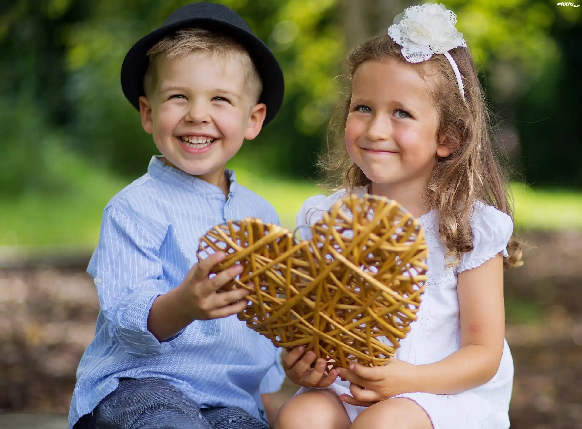 Zdjęcia, Uśmiechnięte, Dzieci, Serce, Park, Walentynki
