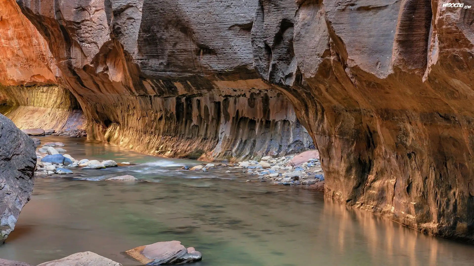 Zdj臋cia, Rzeka, Virgin River, Kanion, Zion Narrows, Park Narodowy Zion, Utah, Stany Zjednoczone