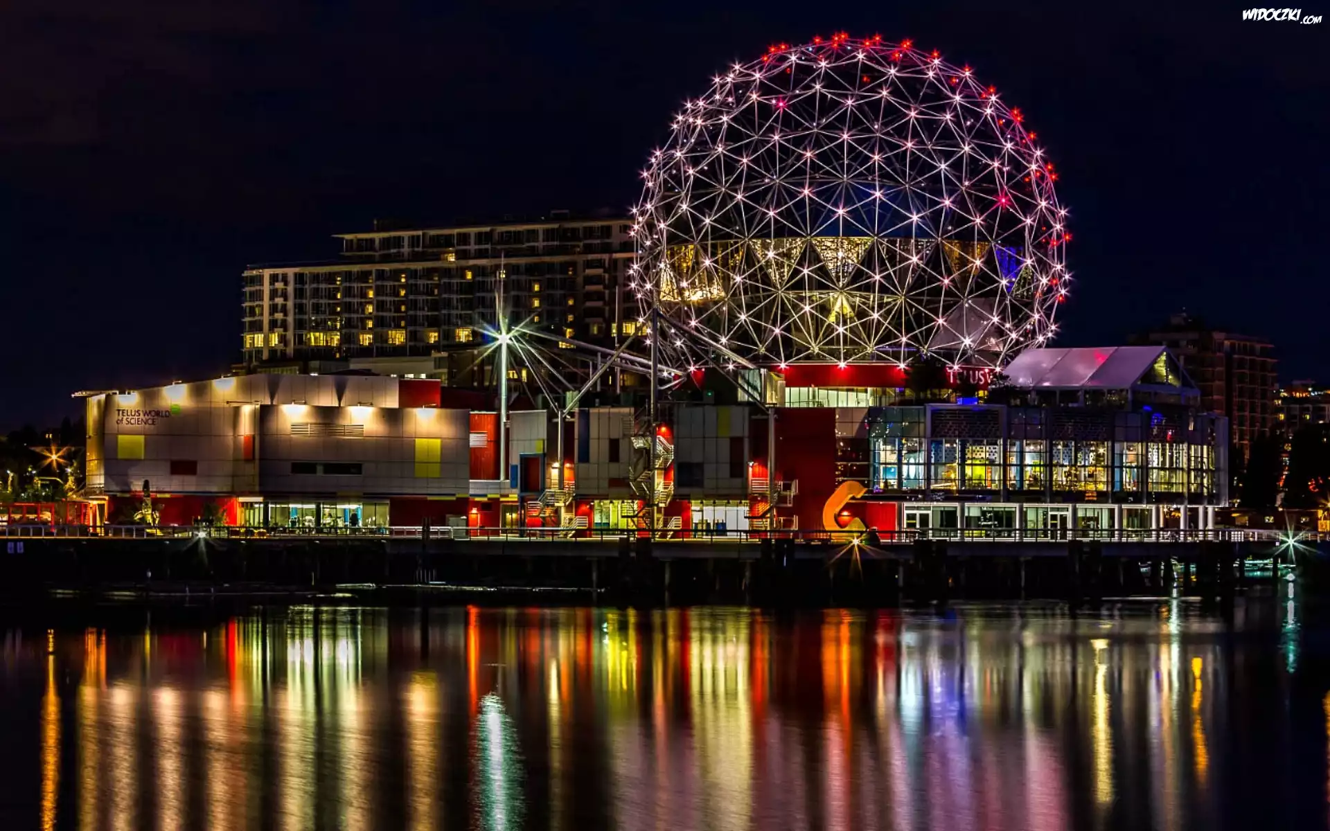 Zdjęcia, Vancouver, Panorama, Miasta, Nocą, Rzeka, Kanada