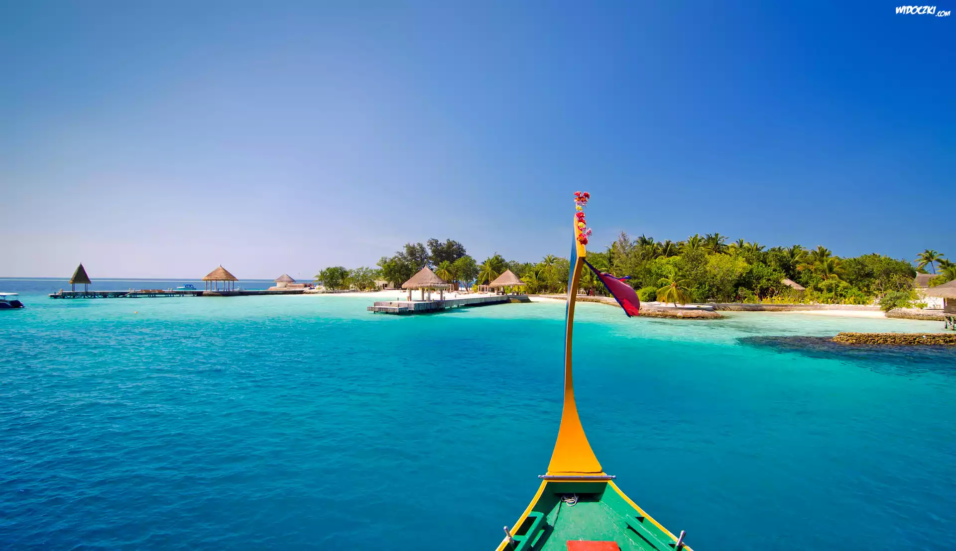 Malediwy, Jumeirah Vittaveli, Morze, Plaża, Łódź, Wyspa, Niebo Wakacje