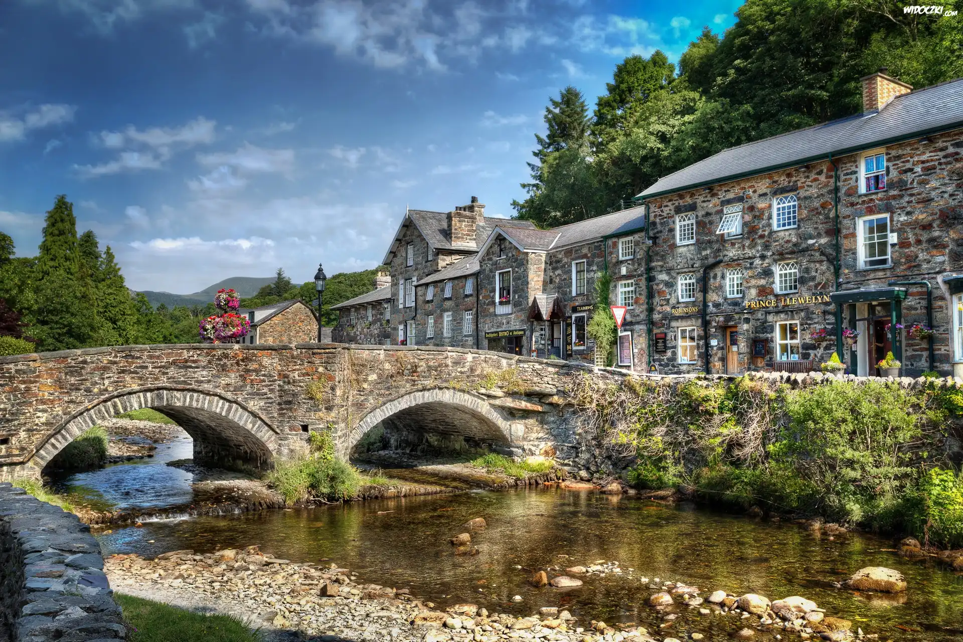 Zdj臋cia, Walia, Wielka Brytania, Domy, Most, Rzeczka