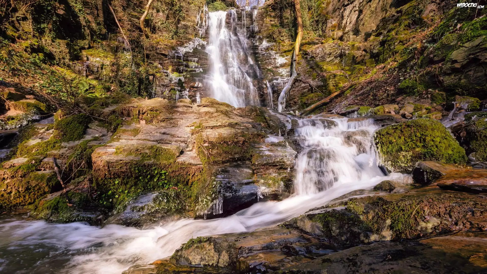 Zdjęcia, Skały, Wodospad, Klidinger Wasserfall, Rzeka, Kliding, Niemcy