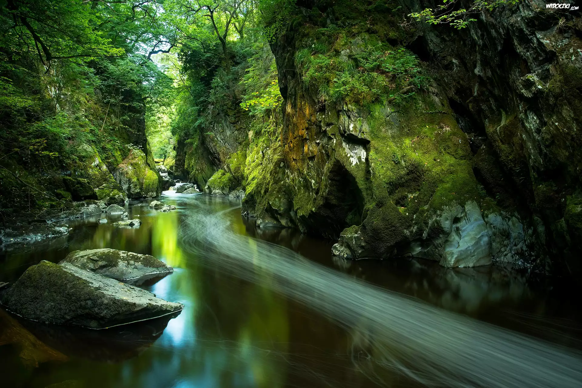 Wąwóz Fairy Glen, Rzeka Conwy, Wioska Betws y Coed, Walia, Park Narodowy Snowdonia, Kamienie, Skały, Drzewa |
