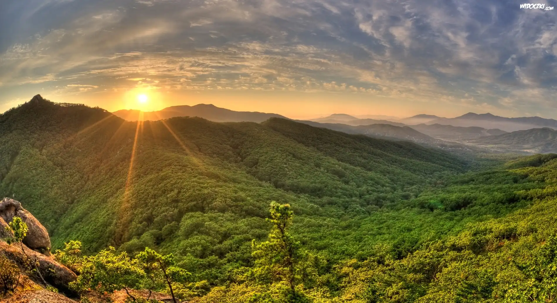Zdjęcia, Wchód, Słońca, Góry, Roślinność