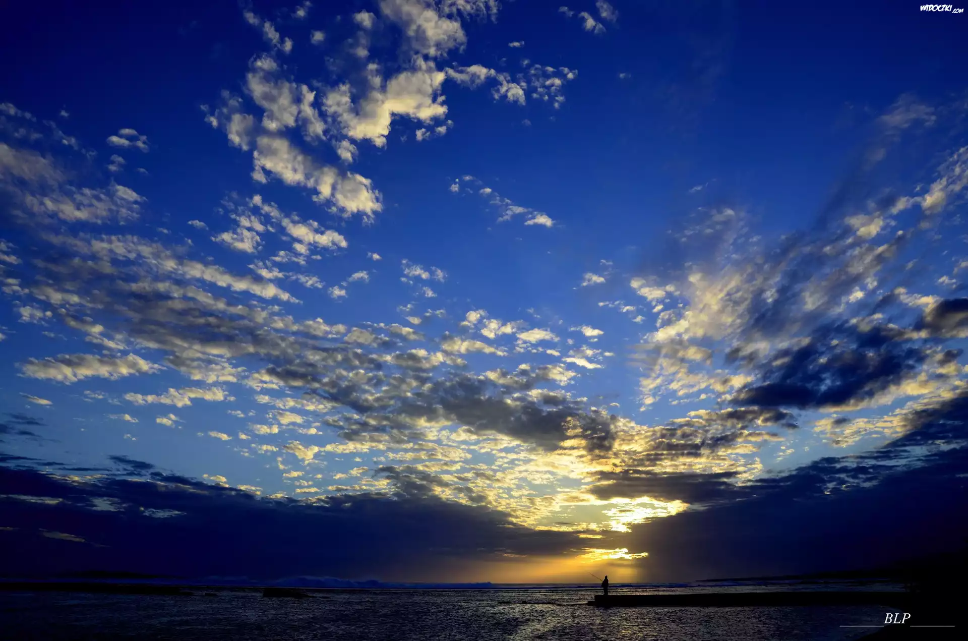 Molo, Wędkarz, Morze, Ciemne, Chmury, Przebijające, Światło