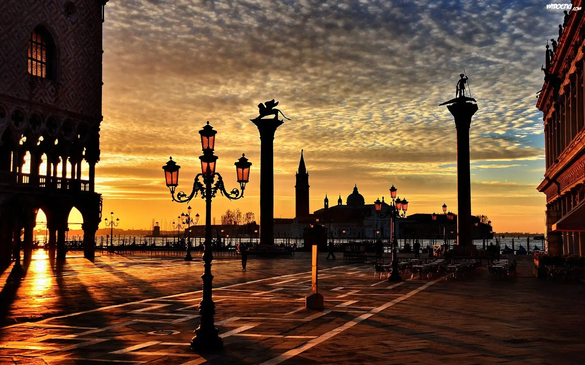Zdjęcia, Wenecja, Włochy, Promenada, Zachód Słońca