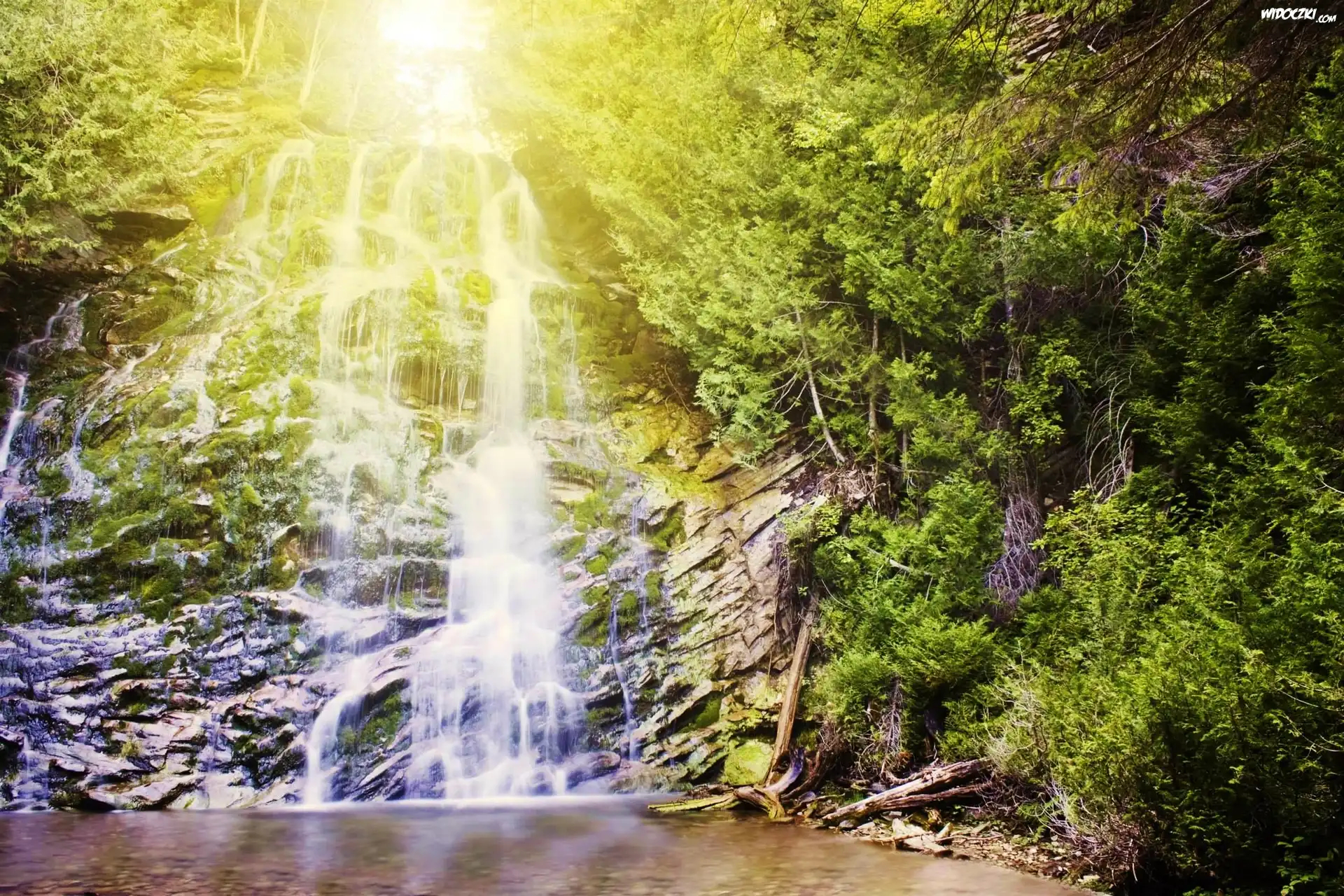 Zdjęcia, Wodospad, Światło, Drzewa