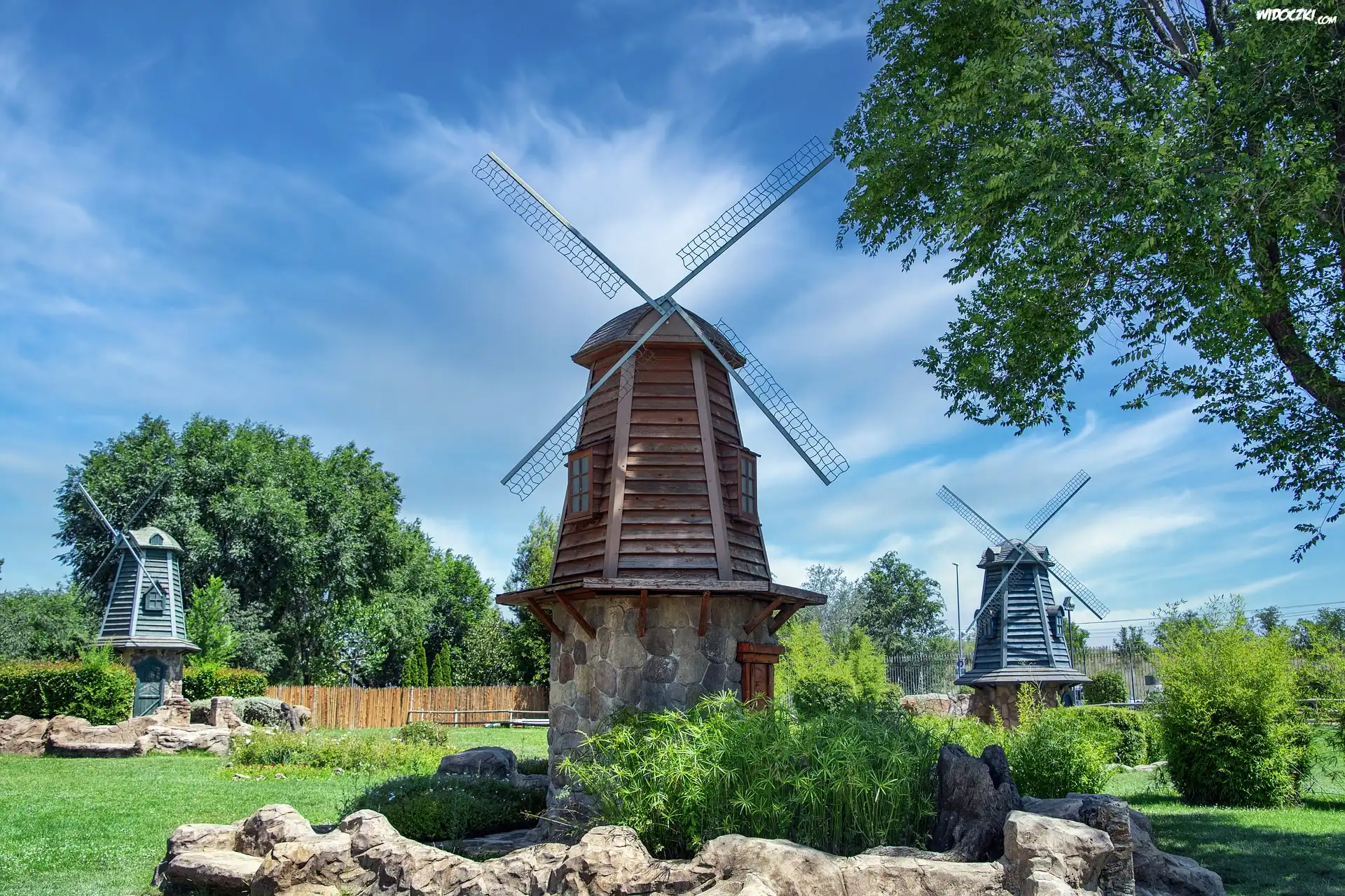 Zdj臋cia, Wiatraki, Drzewa, Lato