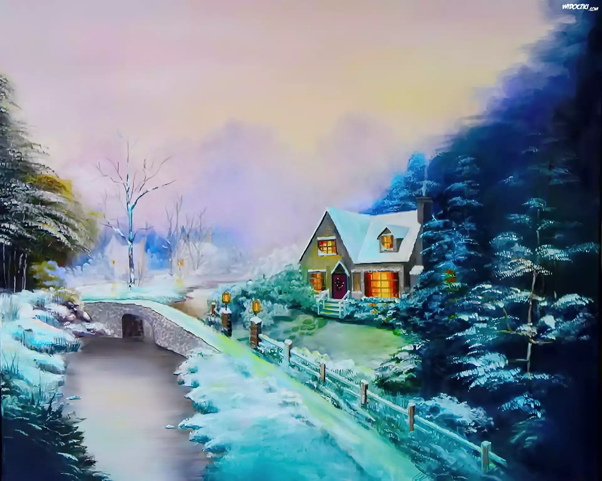 Zdjęcia, Zima, Widoczek, Malarstwo