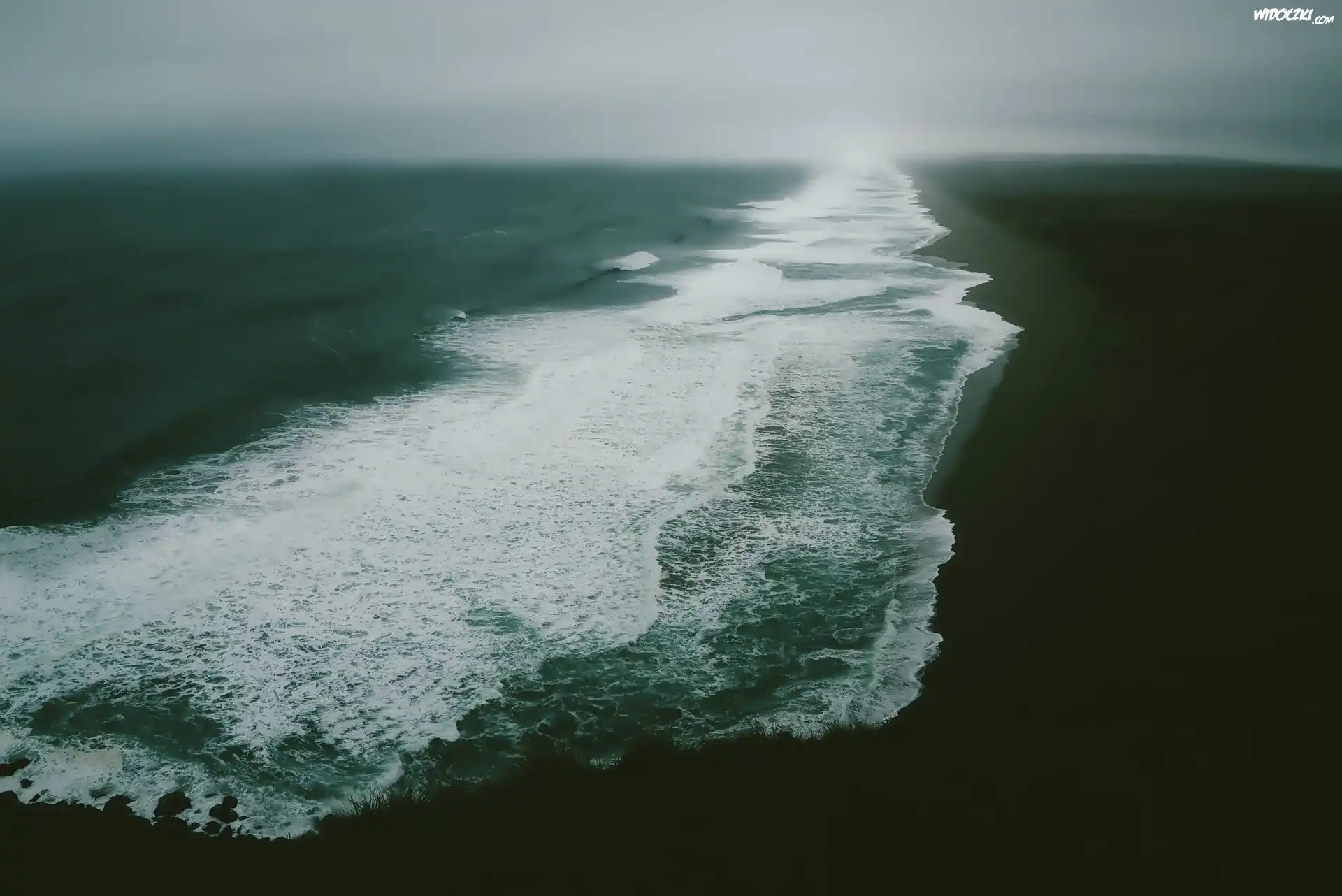 Zdjęcia, Widok, Z, Lotu, Ptaka, Fale, Oceanu