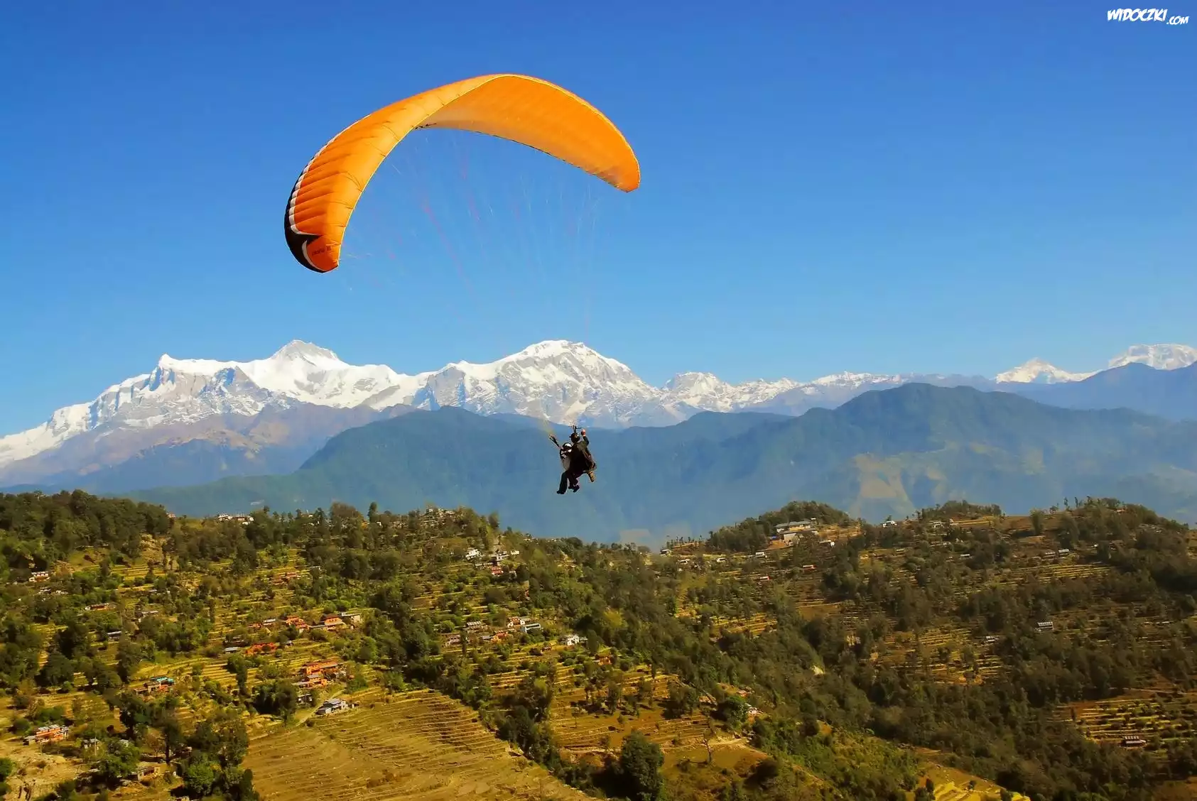 Zdjęcia, Paralotniarz, Widok, Góry