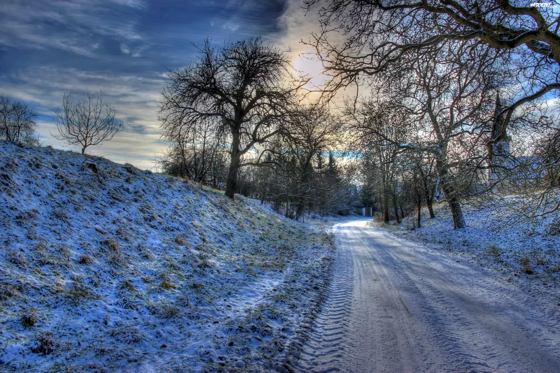 Zdjęcia, Wiejska, Droga, Kościół, Drzewa