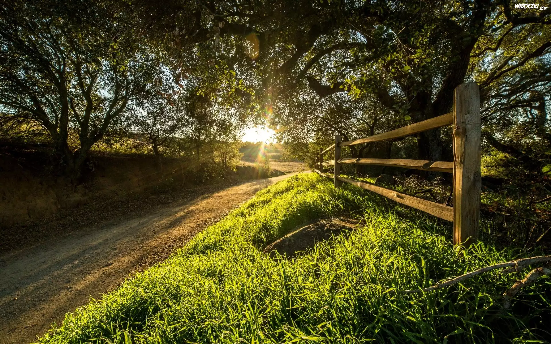 Zdjęcia, Wiejska Droga, Ogrodzenie, Poranek, Promienie Słońca