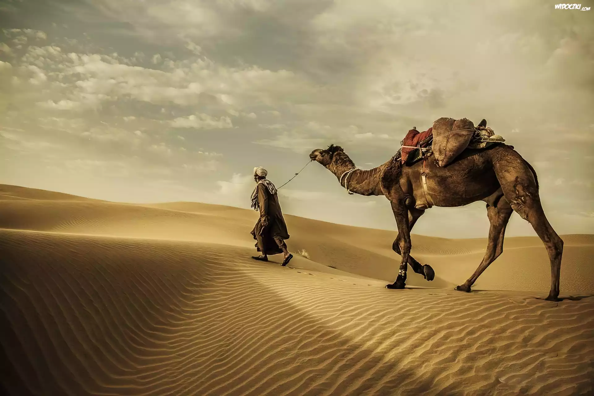 Zdjęcia, Człowiek, Wielbłąd, Piasek