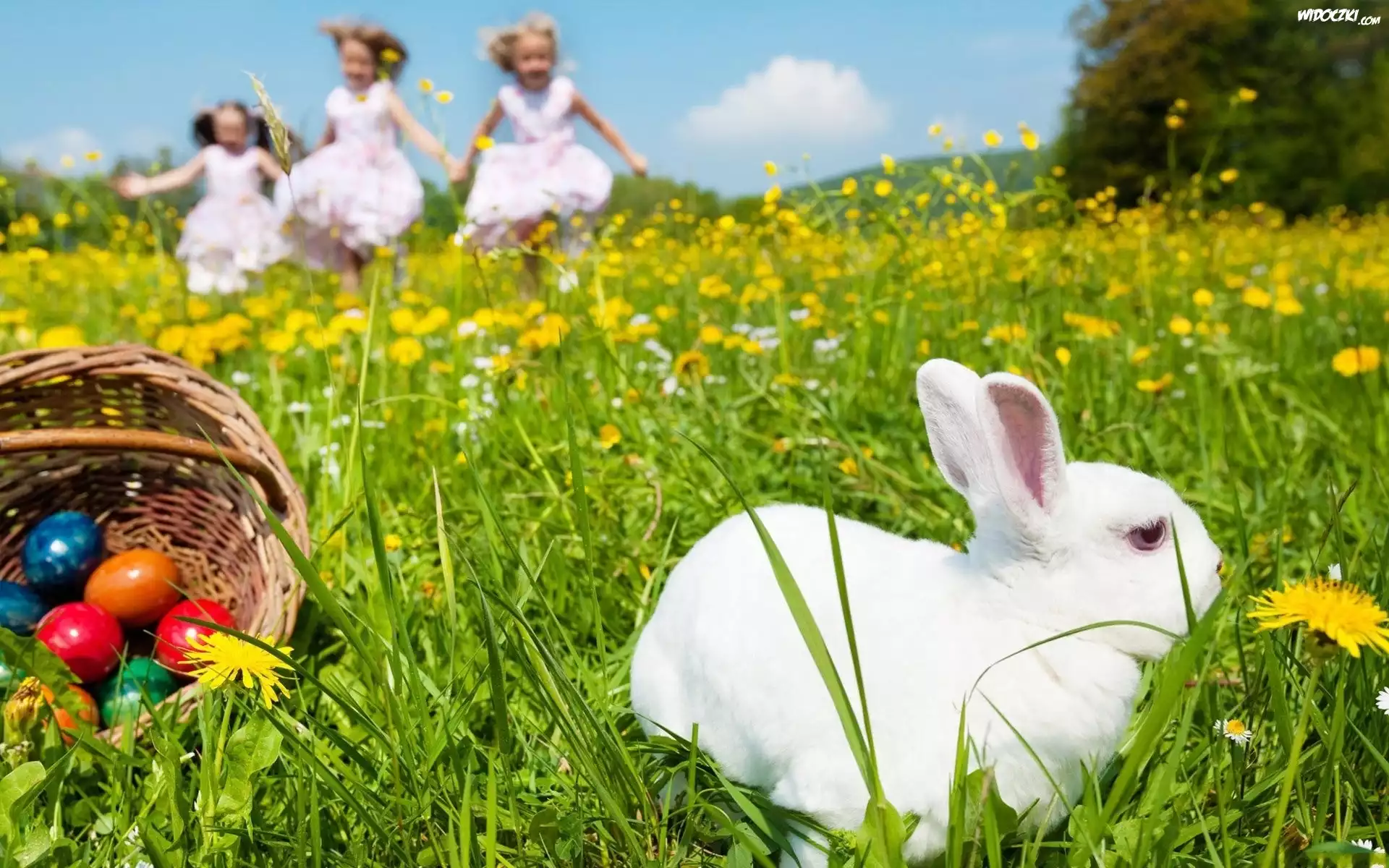 Zdjęcia, Wielkanoc, Królik, Jajka, Dzieci, Łąka