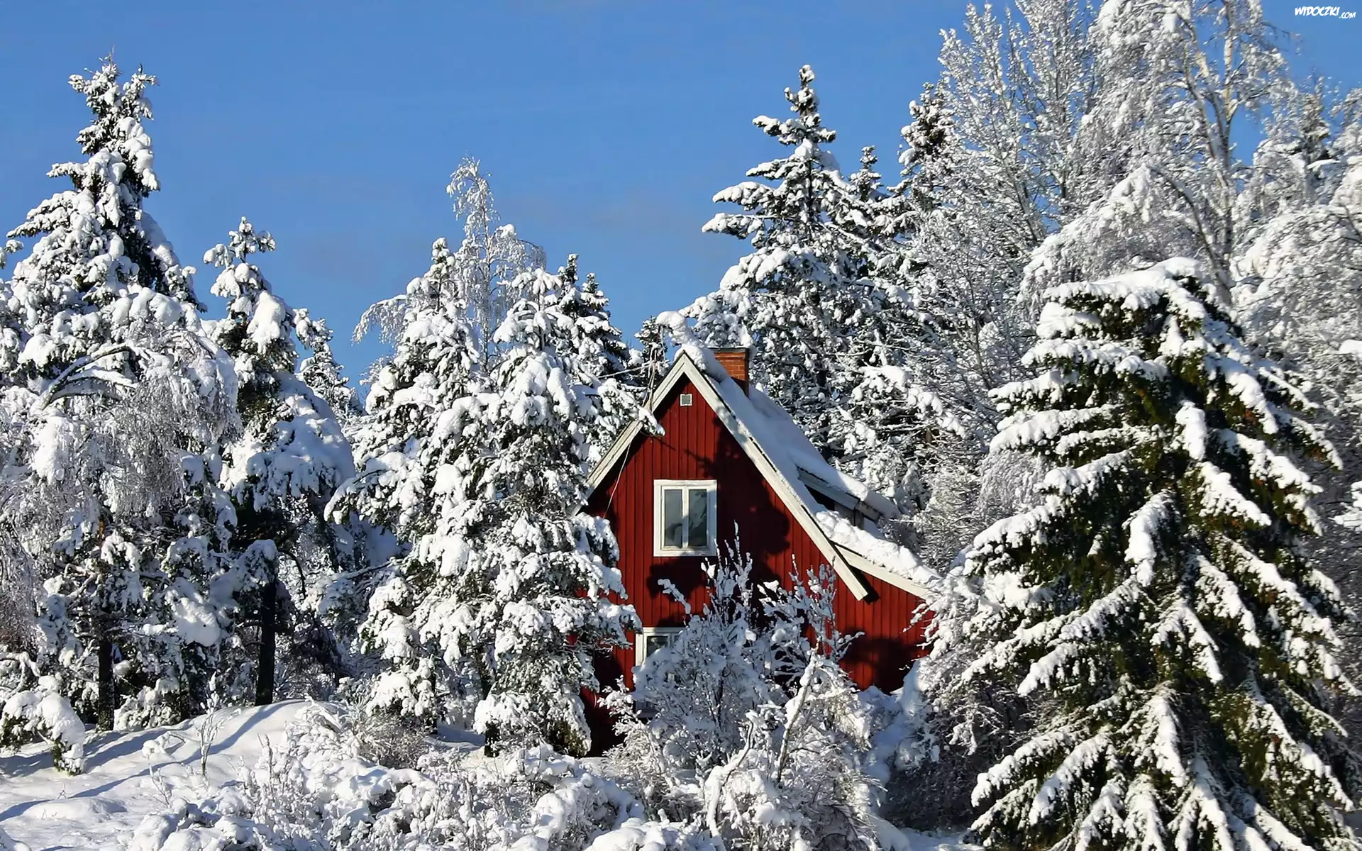 Zdjęcia, Ośnieżone, Świerki, Dom