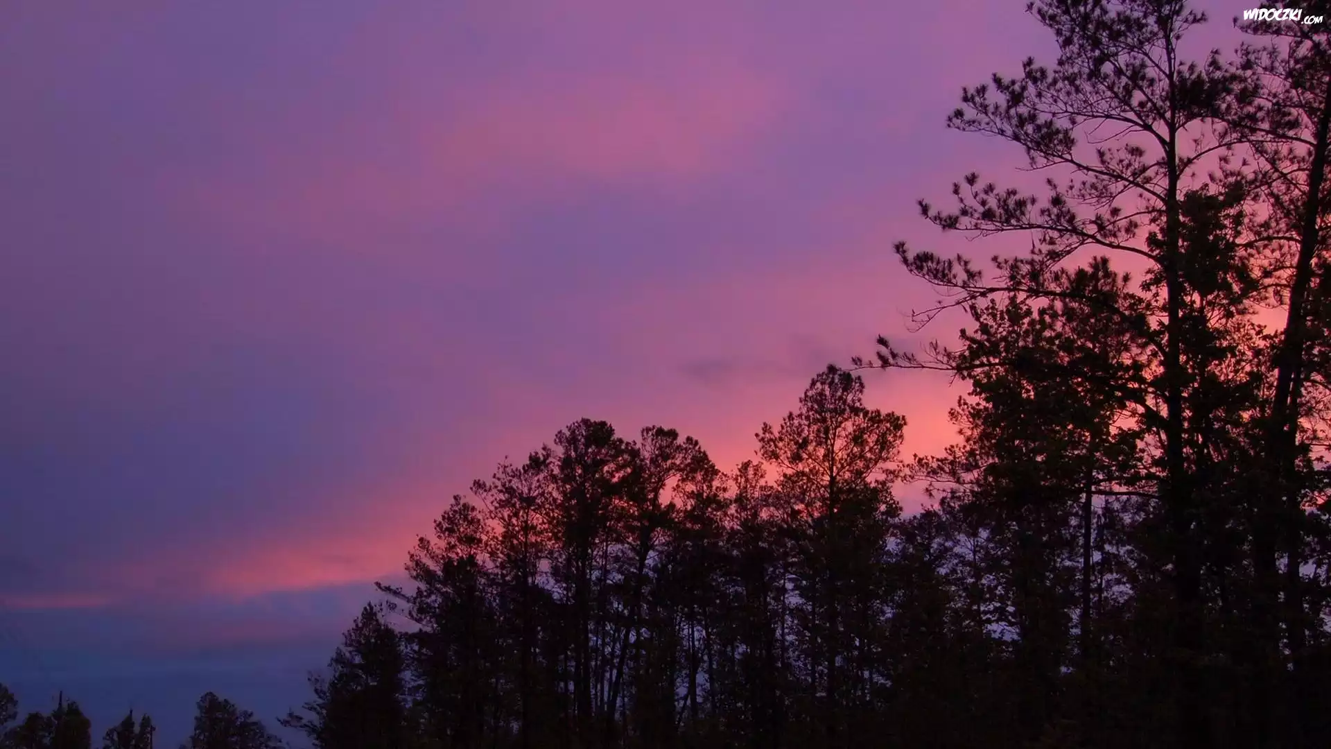 Zdjęcia, Wierzchołki, Drzew, Fioletowe, Niebo