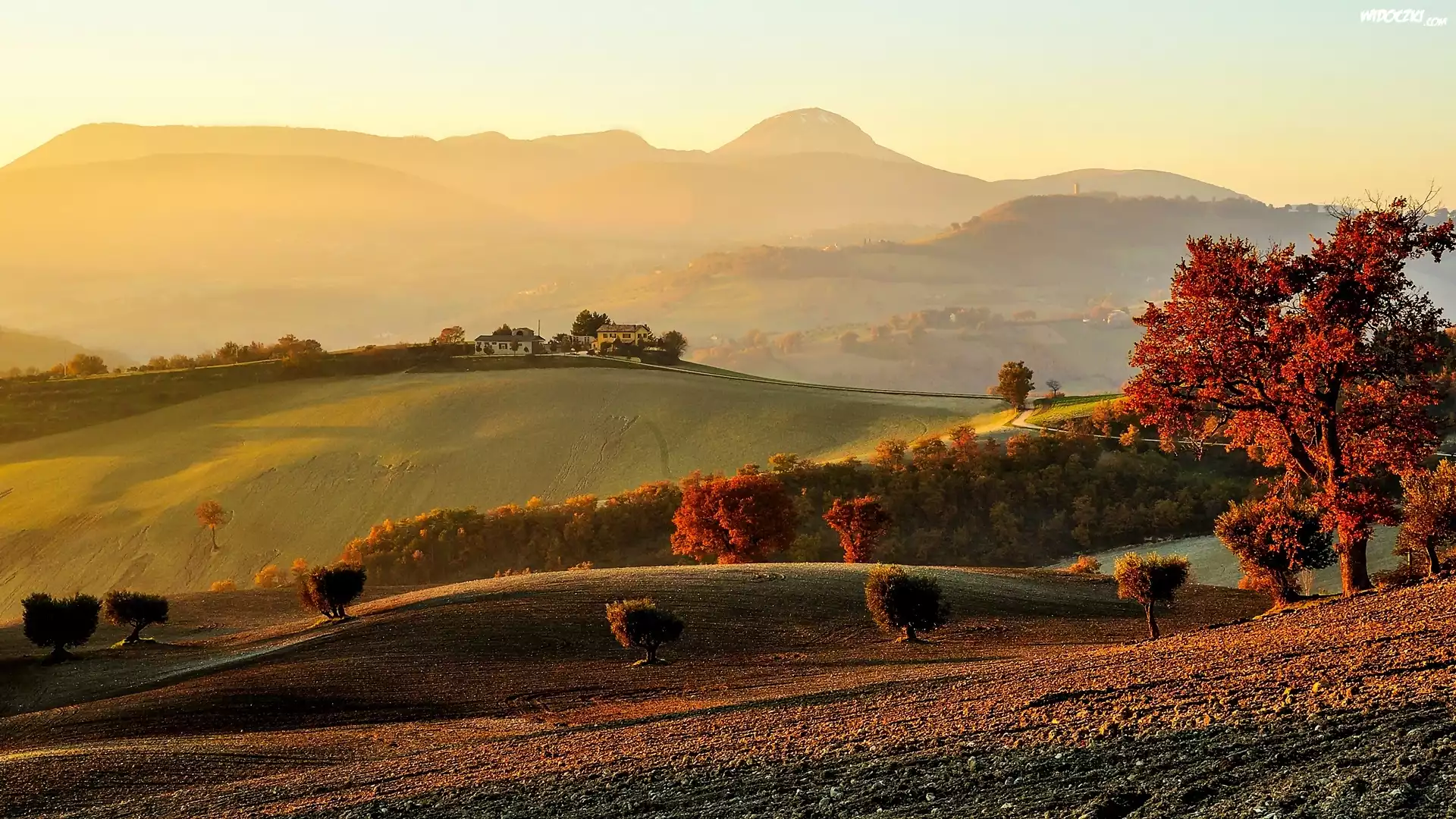 Zdjęcia, Wieś, Pola, Jesień, Góry, Drzewa
