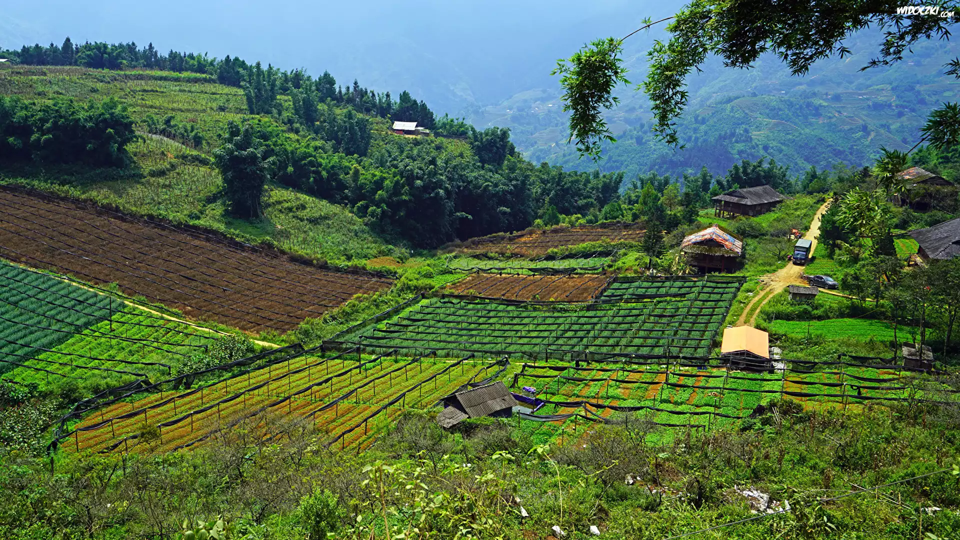 Zdjęcia, Wzgórza, Pola, Domy, Dolina Muong Hoa Valley, Sapa, Wietnam
