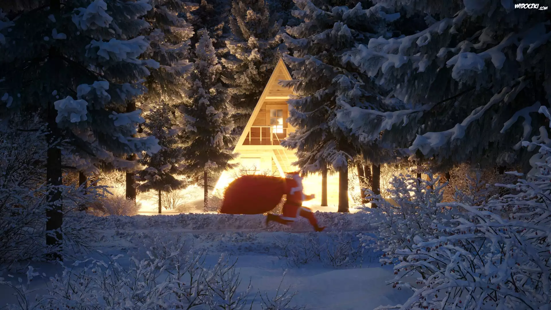 Święty, Mikołaj, Dom, Las, Śnieg, Zima