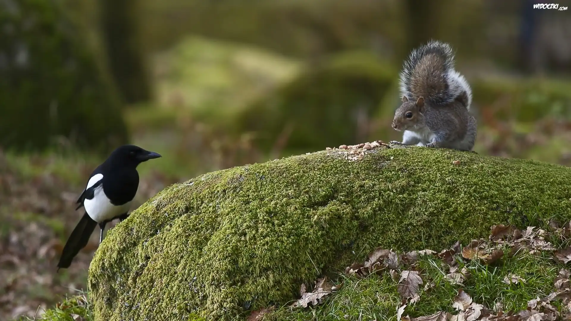 Zdjęcia, Wiewiórka, Sroka, Skała, Las