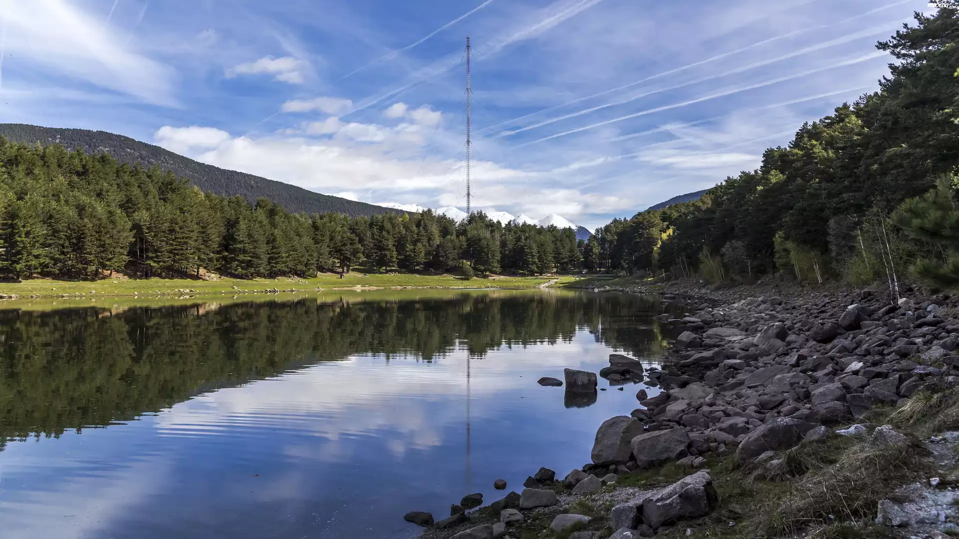 Zdjęcia, Rzeka, Kamienie, Las, Wieża telewizyjna, Natura
