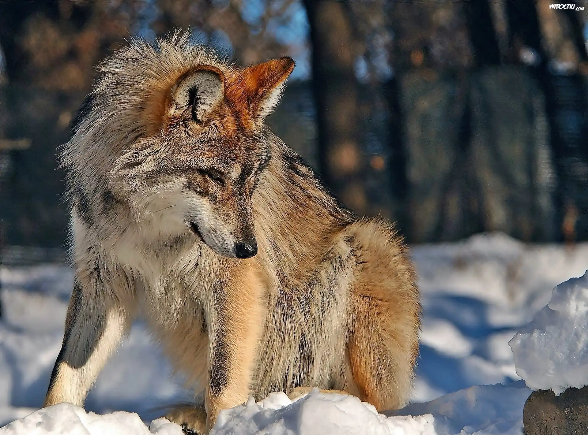 Zdjęcia, Zima, Wilk, W Śniegu, Las, Przebijające, Światło, Rozmycie