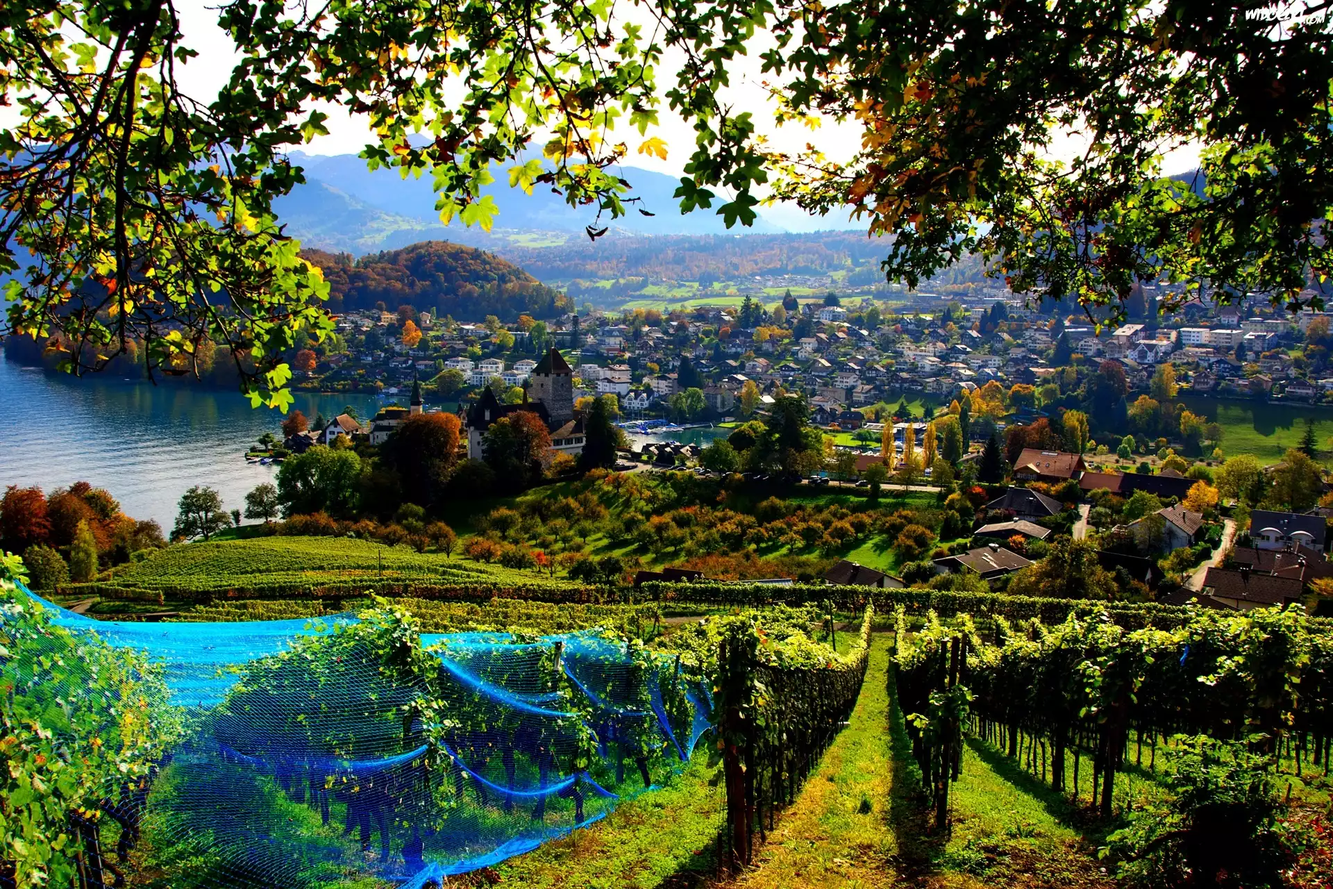 Zdjęcia, Winnica, Panorama, Miasto, Spiez, Szwajcaria