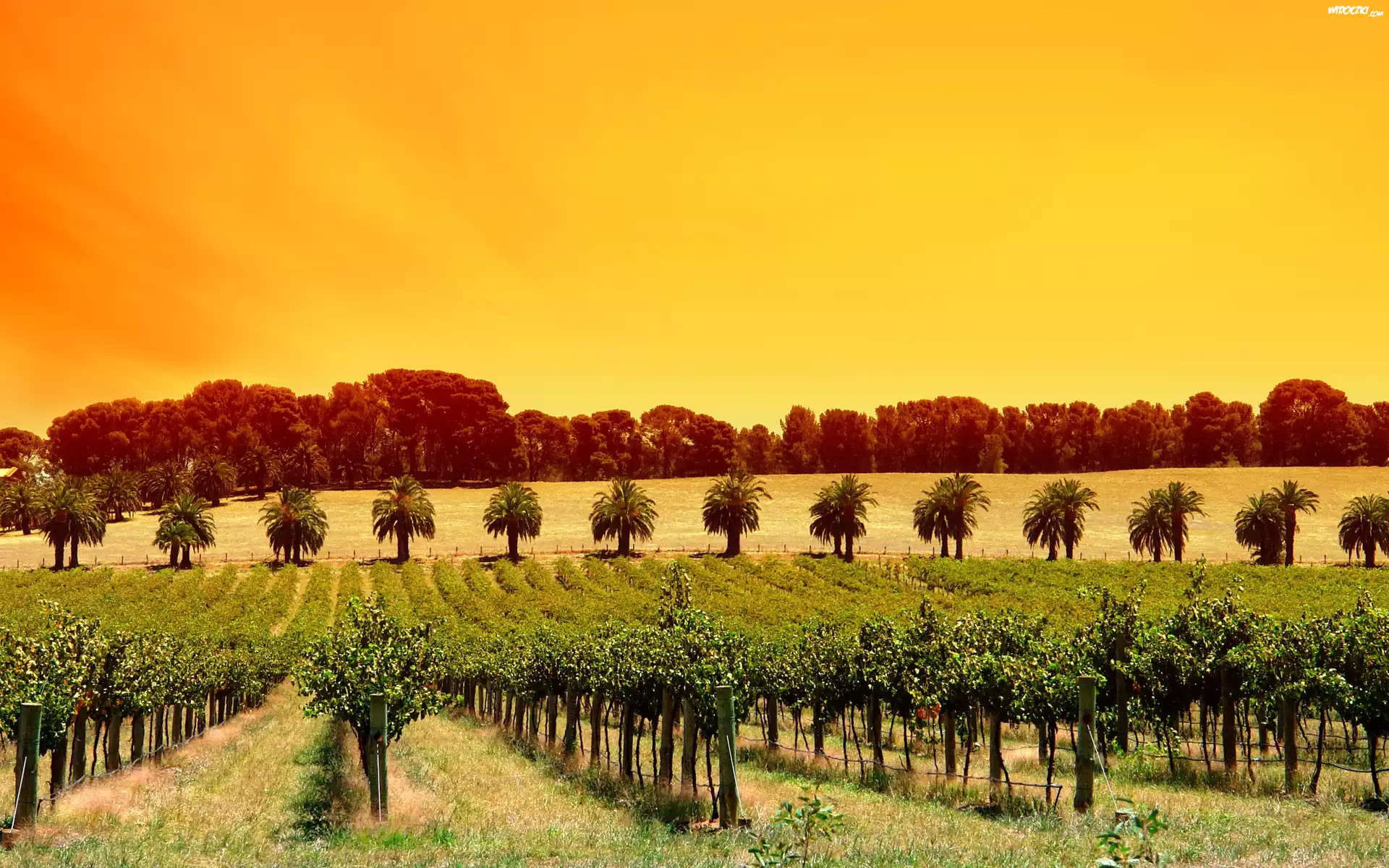 Zdjęcia, Winnica, Drzewka, Owocowe, Zachód, Słońca
