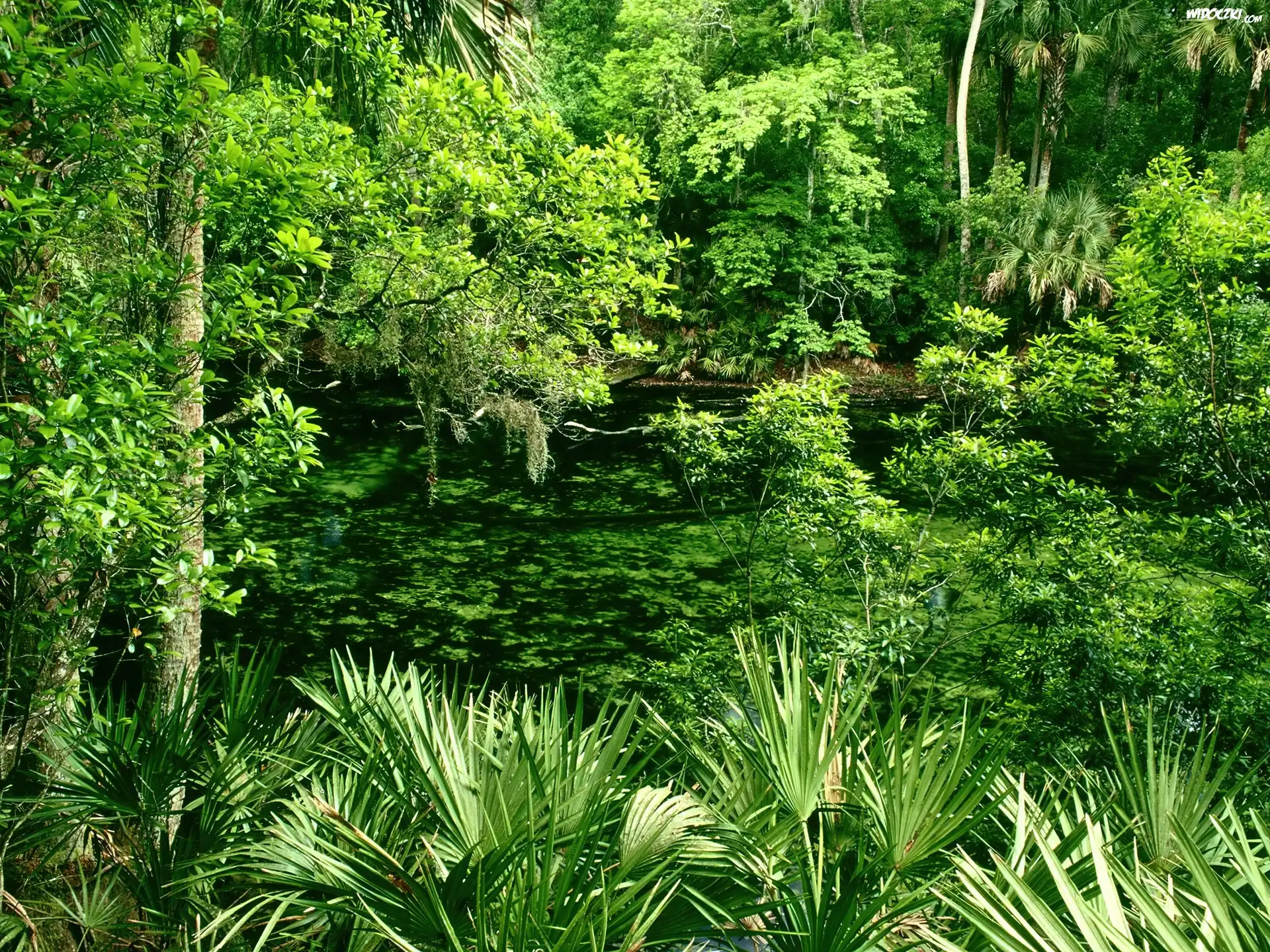 Zdjęcia, Wiosenny, Las, Zielone, Drzewa, Krzewy