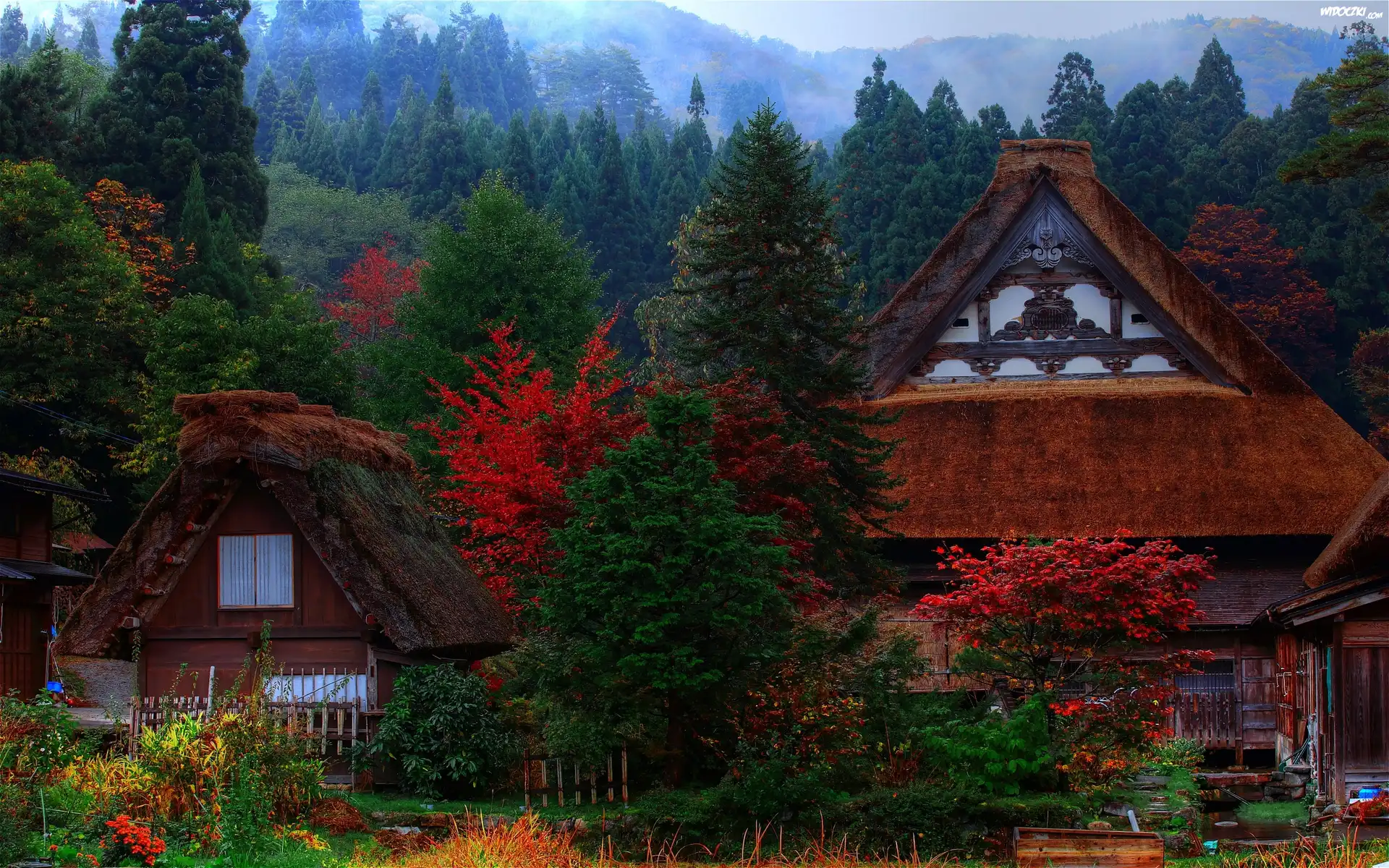 Zdjęcia, Wioska, Domy, Góry, Lasy