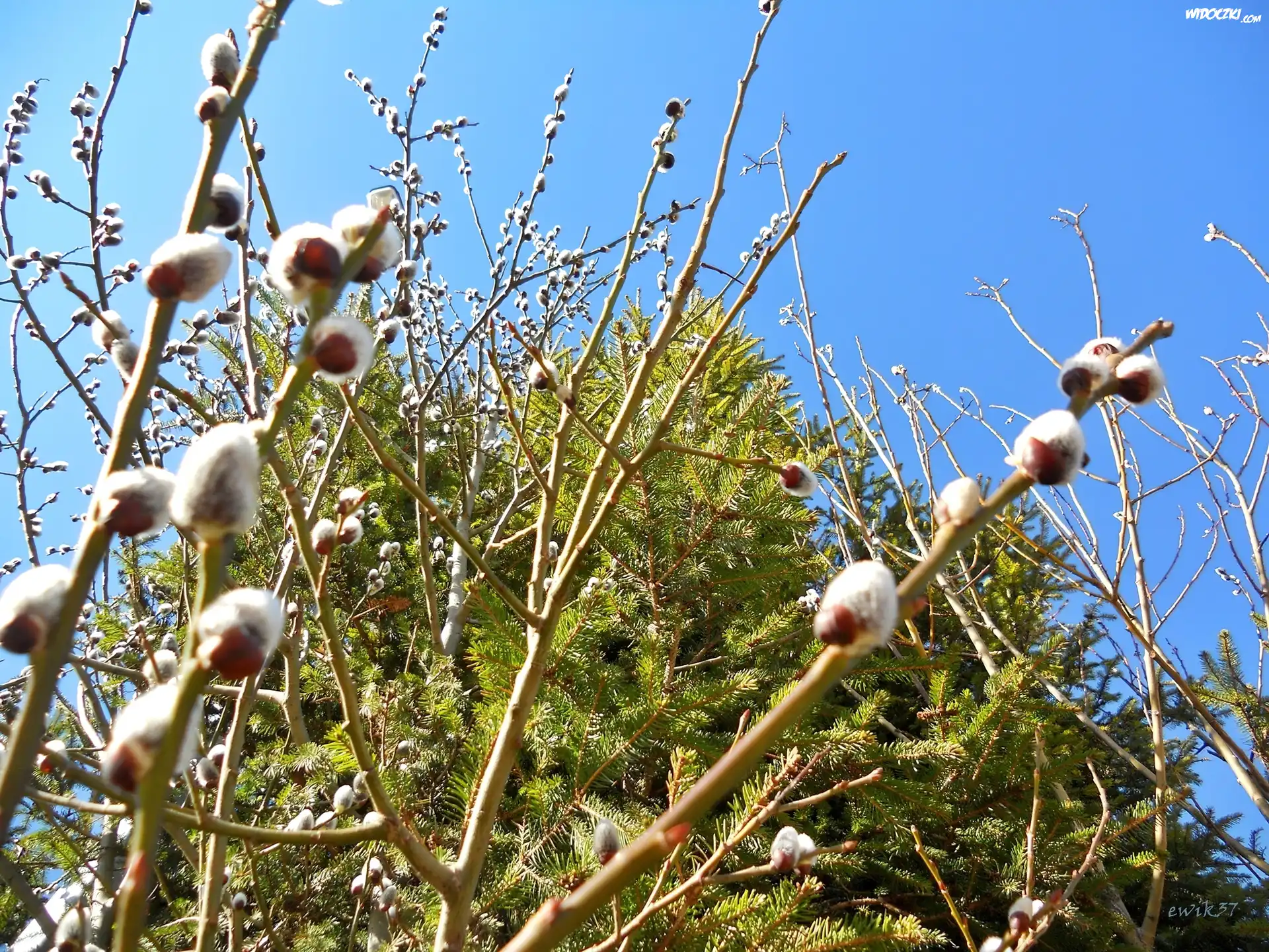 Wiosna, Choinka, Drzewo, Gałęzie, Bazie, Niebo