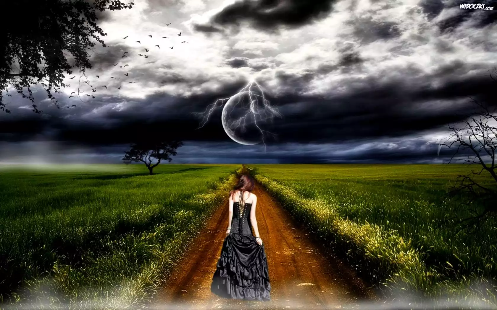 Zdjęcia, Wiosna, Kobieta, Chmury, Droga