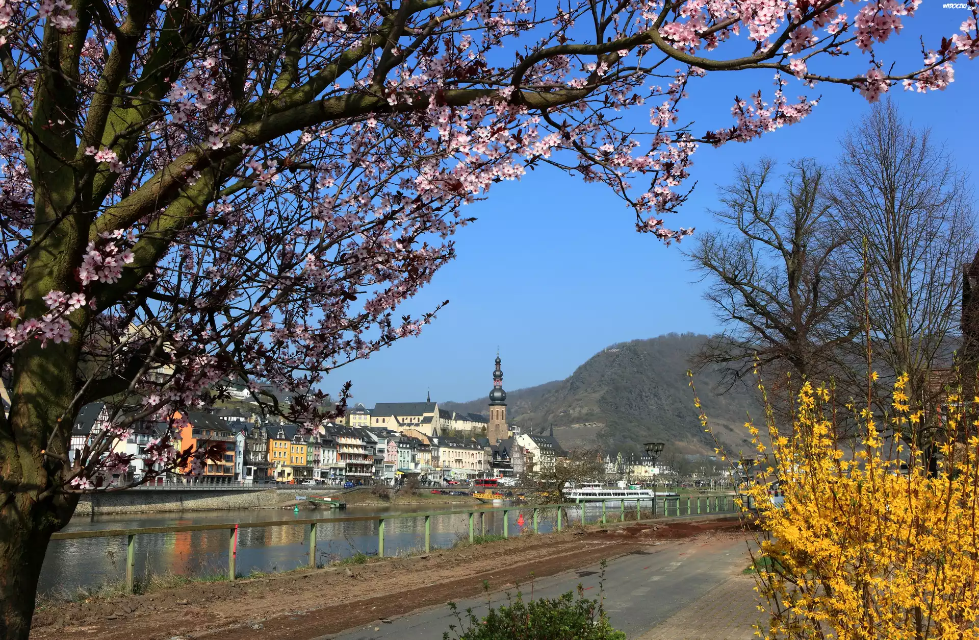 Wiosna, Kwitnące, Drzewo, Rzeka